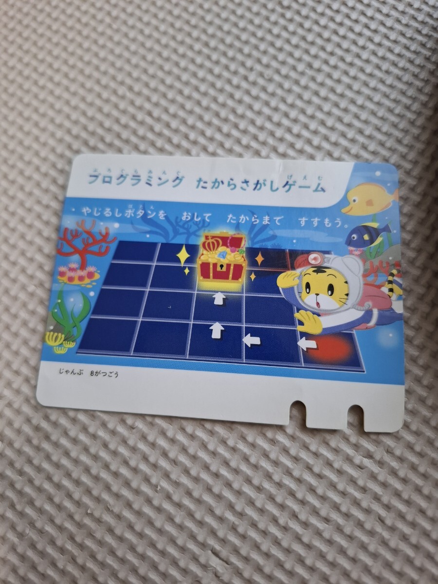 付属のカードを本体にさすと、宝さがしゲームが出来たりします。カードには少し使用感はあります。写真でご確認のうえ、ご了承頂いた方のみご購入ください。使用感はあるものの、きちんと使えますので、ご安心下さい。