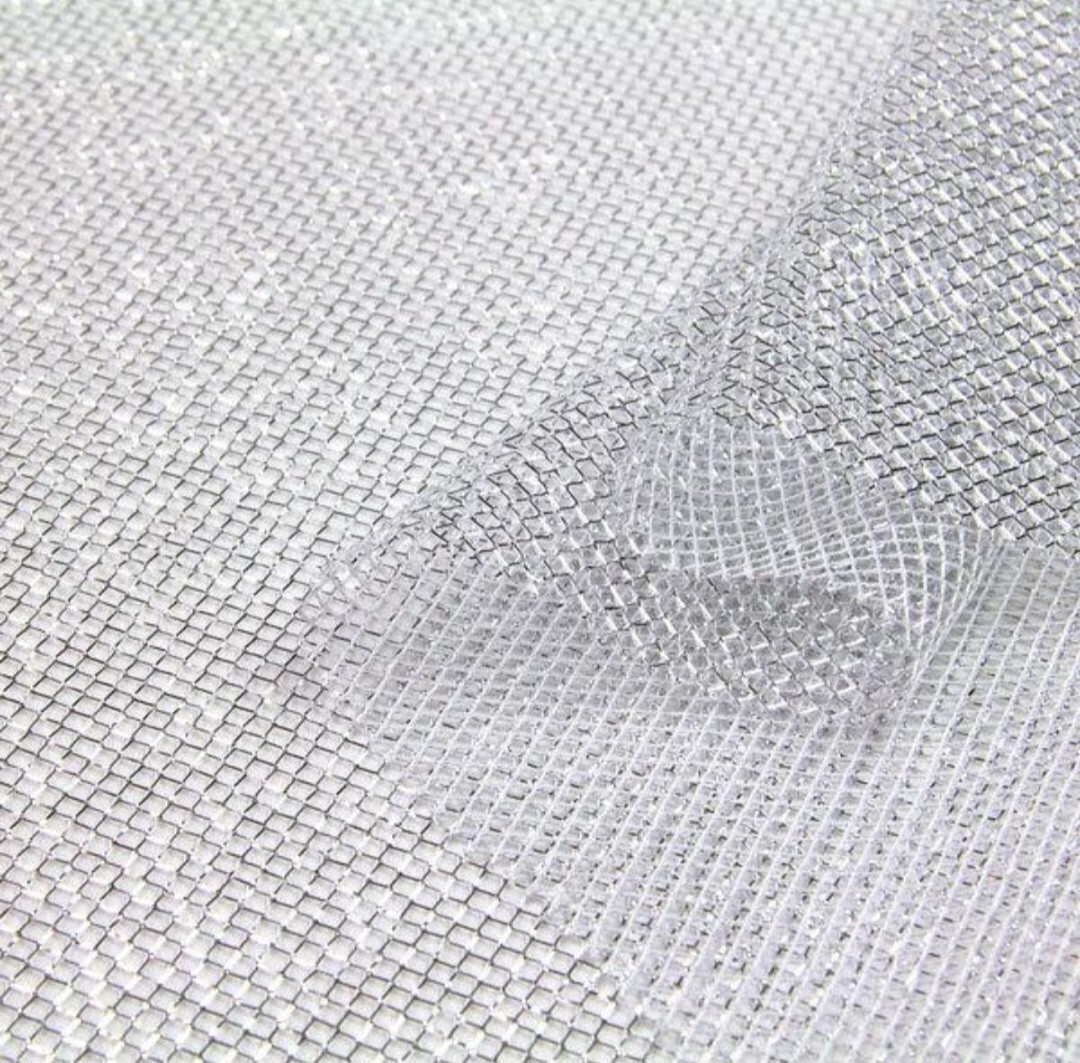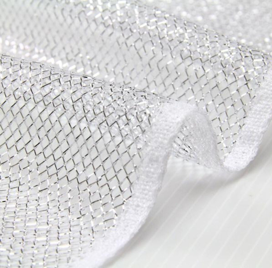 ナイロンのネットにシルバーのラメを編み込んだ生地になります。