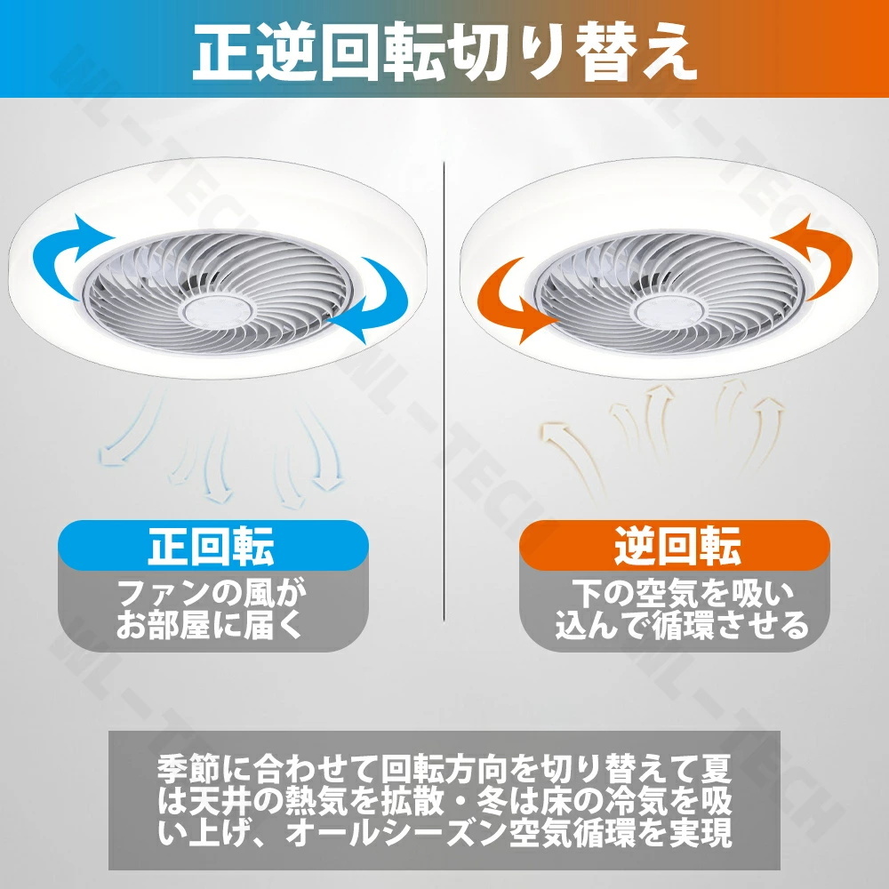 ・風量調節可能です。エアコンで作った冷たい空気や暖かい空気は部屋の上下に滞留してしまいます。そんな偏った空気を風量を調節することで、効率よく空気を循環させ、冷暖房の効果を高めることができます。