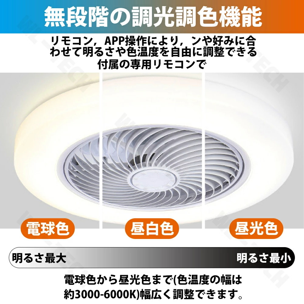 ・リモコン付き:調光調色、タイマー設定、風量調節など全ての操作が可能なリモコン式、気分やシーンに合わせて明るさや色調を自在に調整できます。