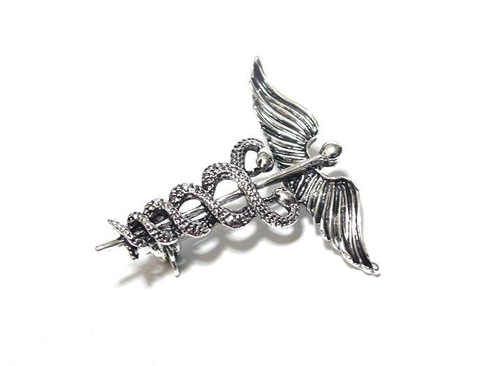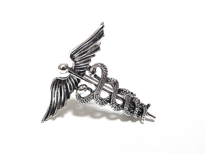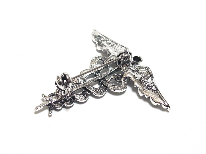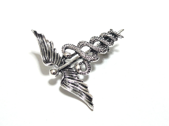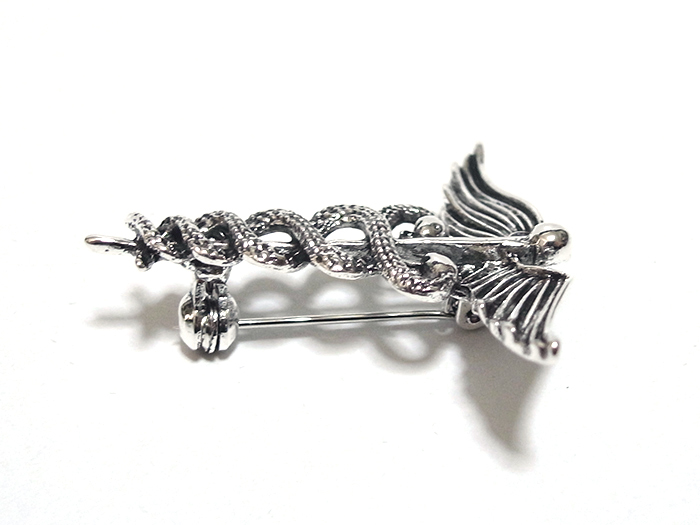 【ラペルピン★ブローチ】ケリュケイオン カドゥケウスの杖 ヘルメス神 商業 交通 アンティーク・シルバー pin-0600