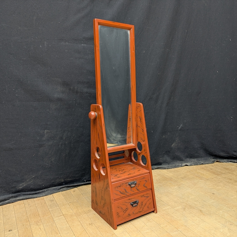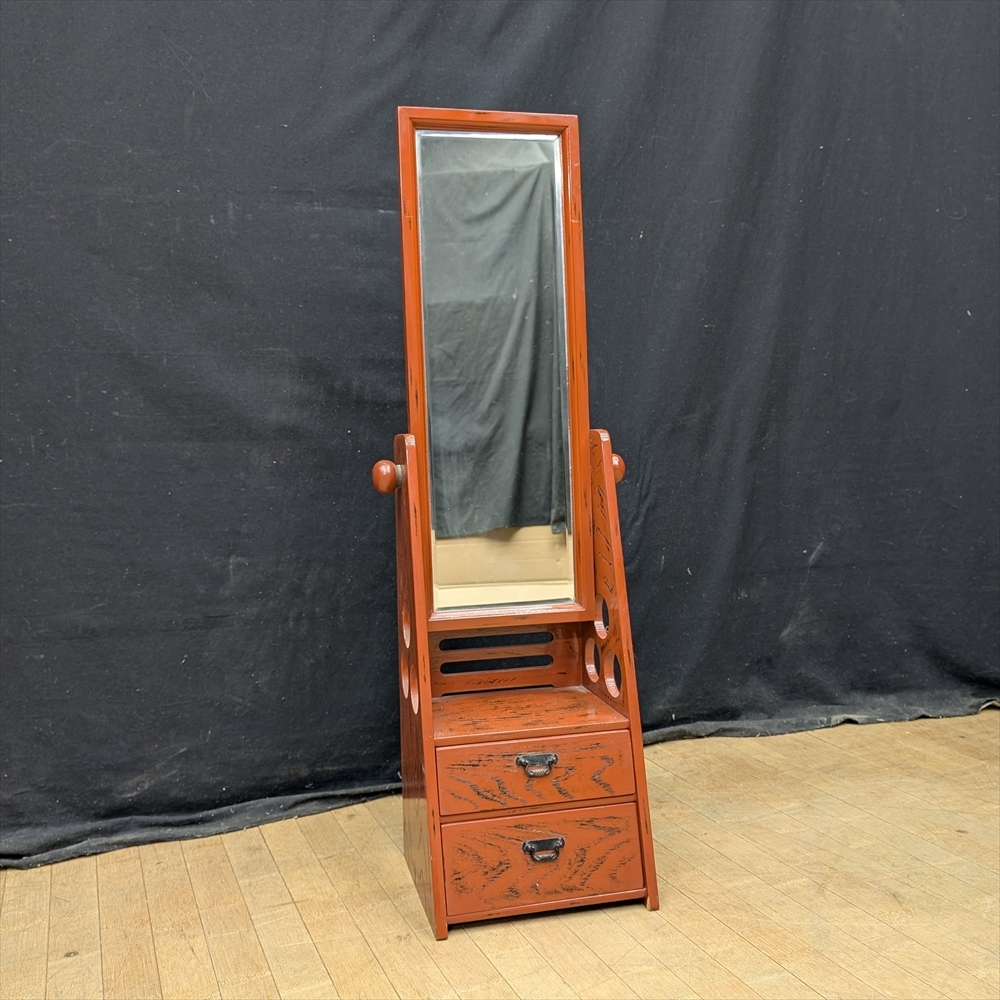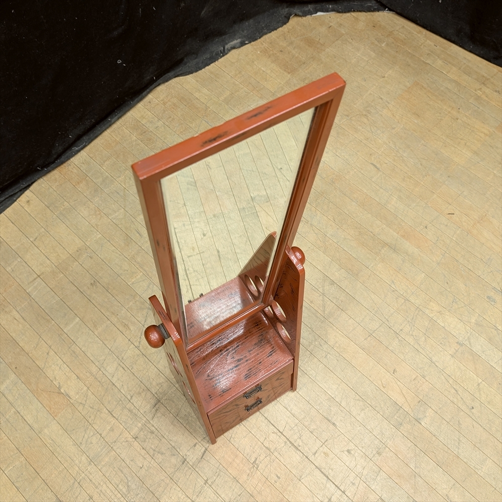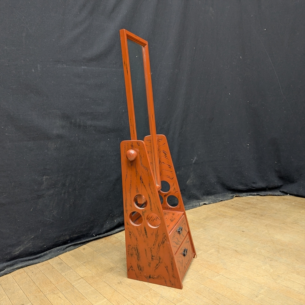 ★民芸家具★根来塗★工芸品★伝統★ 1面鏡 鏡台 鏡 ミラー 姿見 置き型 引き出し 抽斗 和家具 座敷 面取り