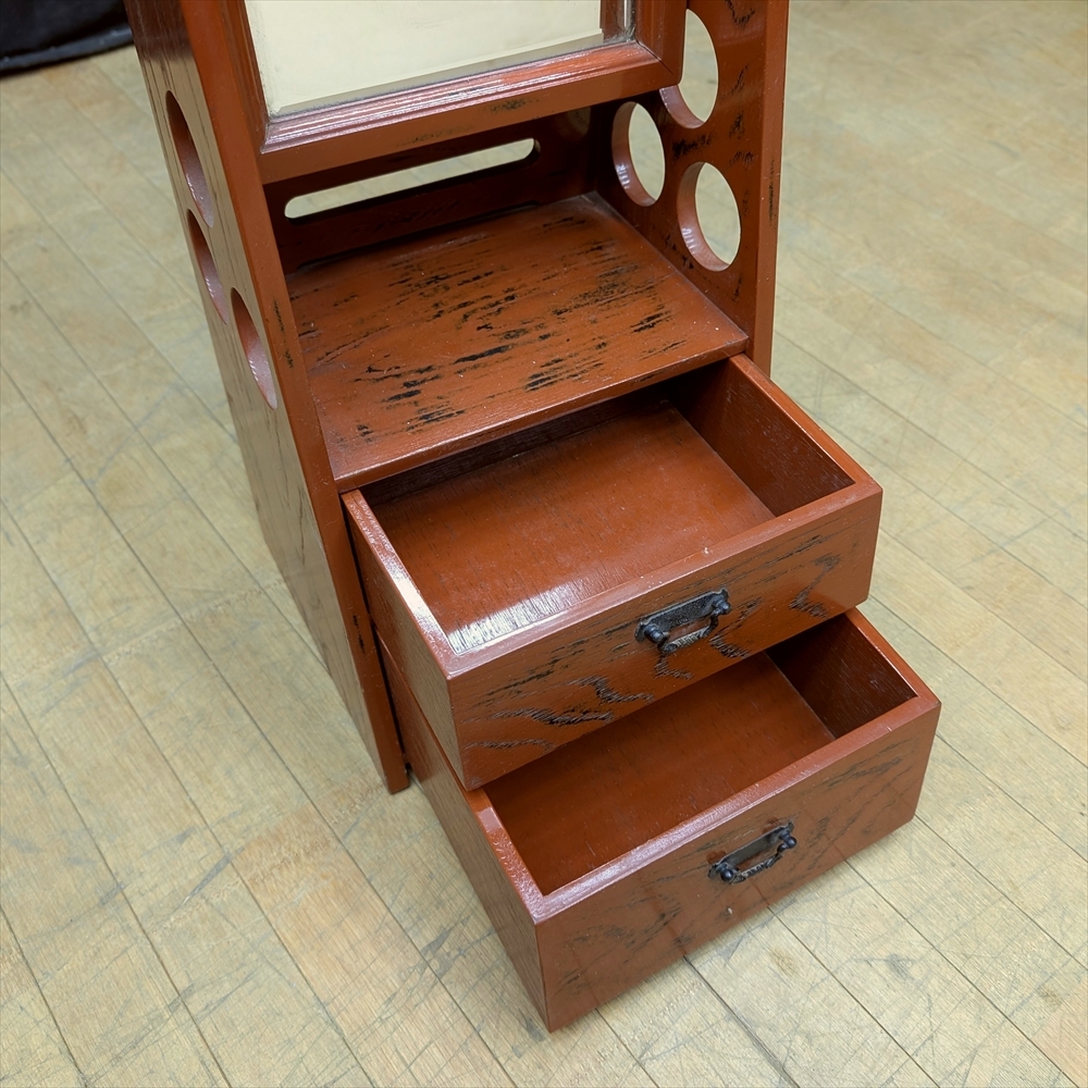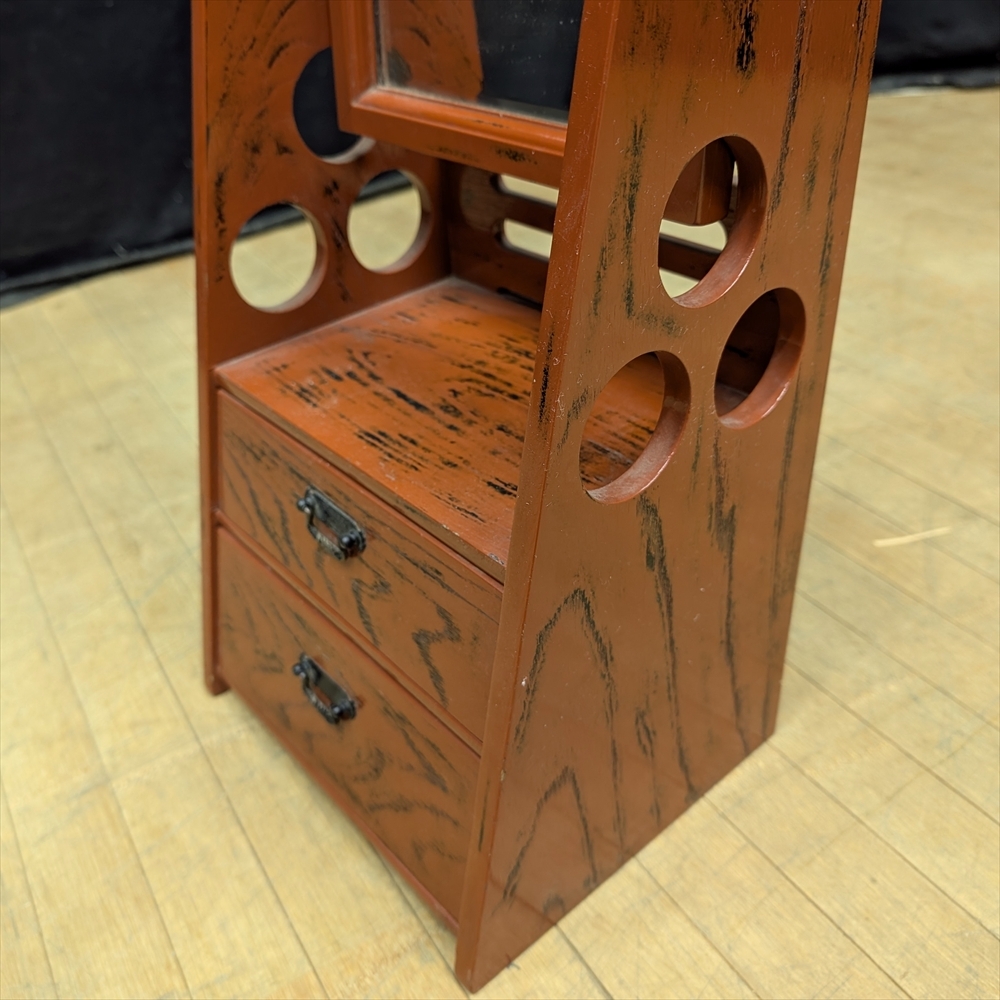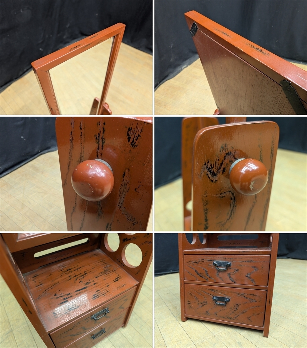 ★民芸家具★根来塗★工芸品★伝統★ 1面鏡 鏡台 鏡 ミラー 姿見 置き型 引き出し 抽斗 和家具 座敷 面取り