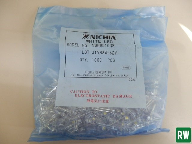 | 発光ダイオード 【約500個入】 白色 WHITE LED 日亜化学工業 NSPW510DS 砲弾型 φ5×8.5mm 全長30mm 電子部品 パーツ |