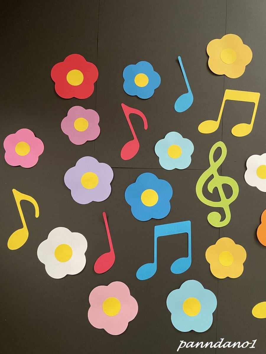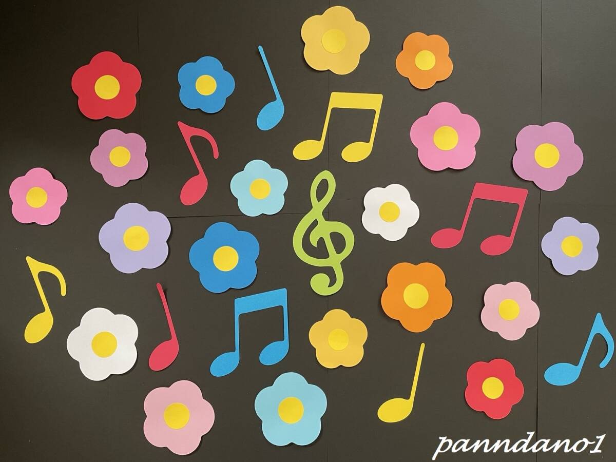 ☆ハンドメイド☆【壁面飾り】 春 音符 & お花 卒園式 卒業式 入園式 入学式 発表会 幼稚園 保育園 施設 病院 掲示板