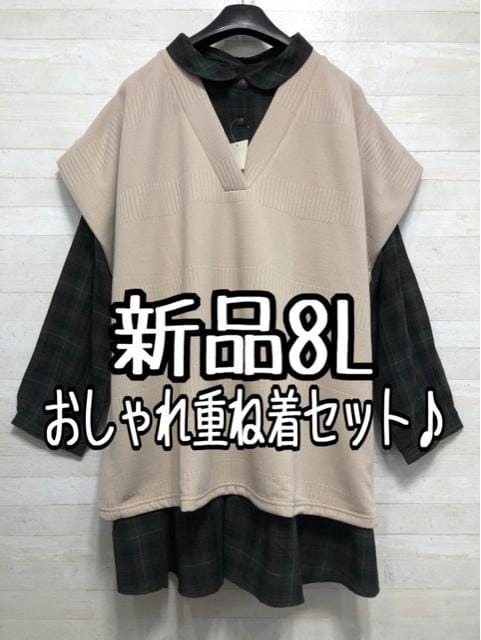 新品☆8L♪おしゃれな重ね着セット♪綿100%シャツチュニック♪わけありも〇D449