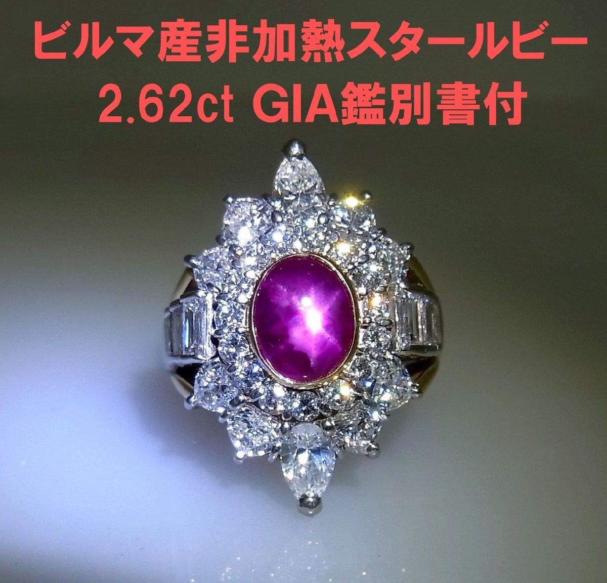 ビルマ産 非加熱 天然スタールビー2.62ct 天然ダイヤ プラチナリング 商品動画 送料込み
