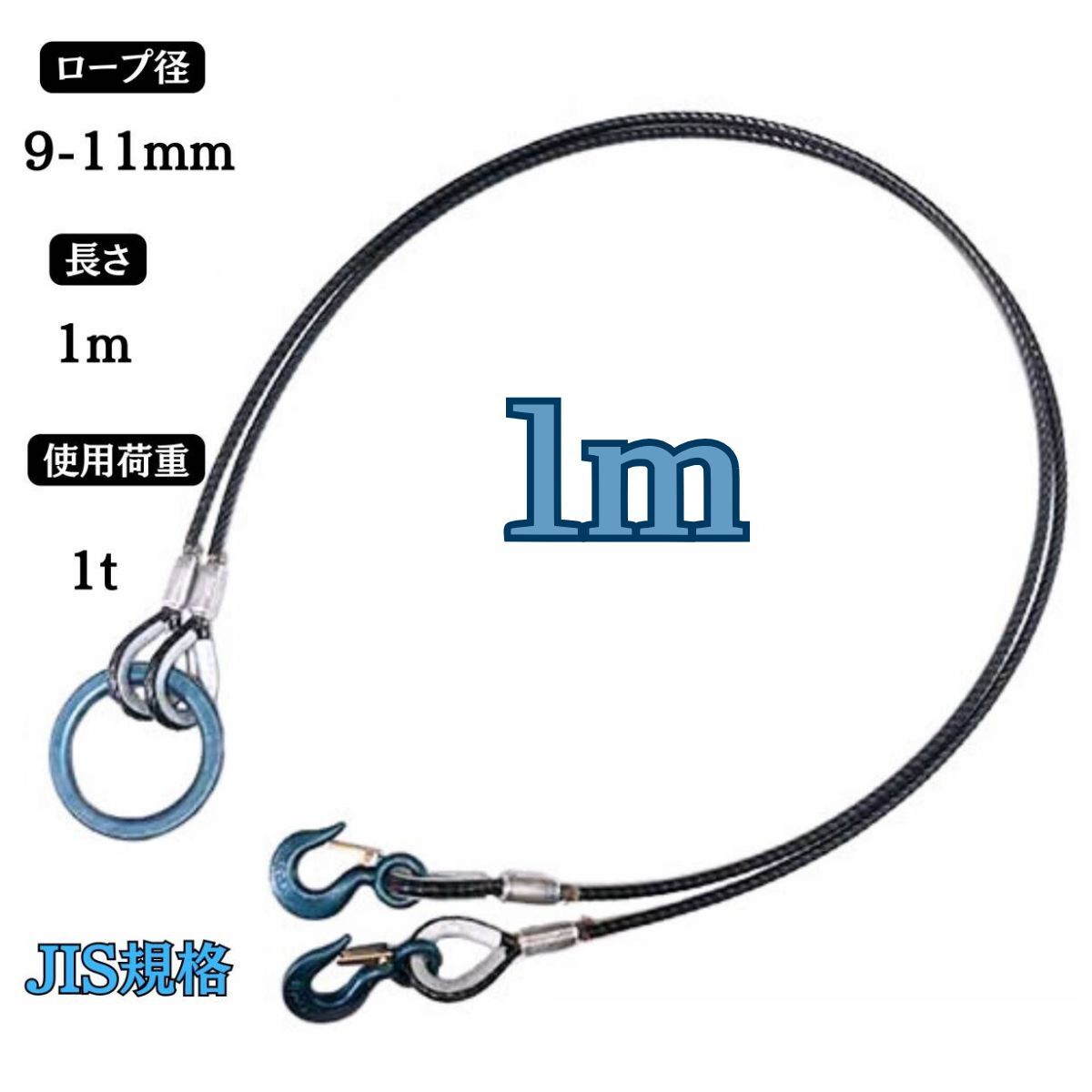 ◆JIS規格 2点吊 関西工業 被覆(9mm-11mm)×1m 使用荷重1t 玉掛 クレーン ワイヤーロープ フック リング 吊り金具◆ | ||||