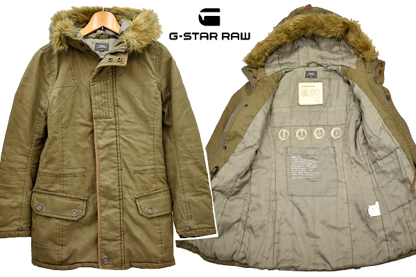 A-4885★G-STAR RAW DENIM ジースターロウ 3301★頑丈ゴツイ 強そうに見えます カーキブラウン フィールド ジャケット モッズ コート XS