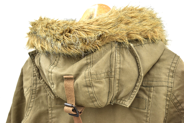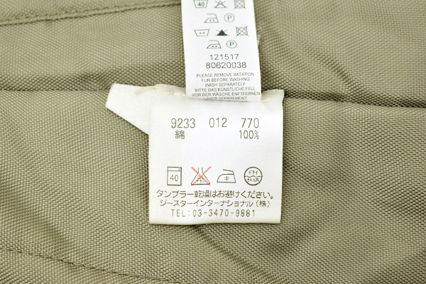 カーキブラウン ジャケット コート 内ポケット6個 外ポケット4個 ファーがボタンで取り外し可能 左肩・左袖・左ファスナー横下にブランドロゴ刺繍あり