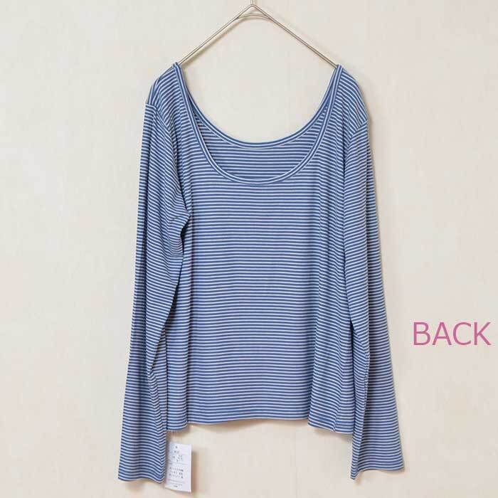 フリー F ボーダー Tシャツ カットソー 長袖 背あき テレコ トップス ナチュラル 背中見せ カジュアル 丸首 ブルー 26127