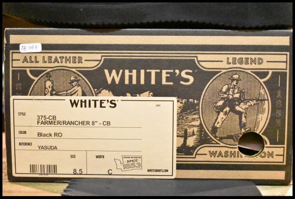 【8.5C 箱付 美品】WHITE'S ホワイツ ファーマーランチャー 375-CB ブラックラフアウト スモークジャンパーブーツ HOPESMORE