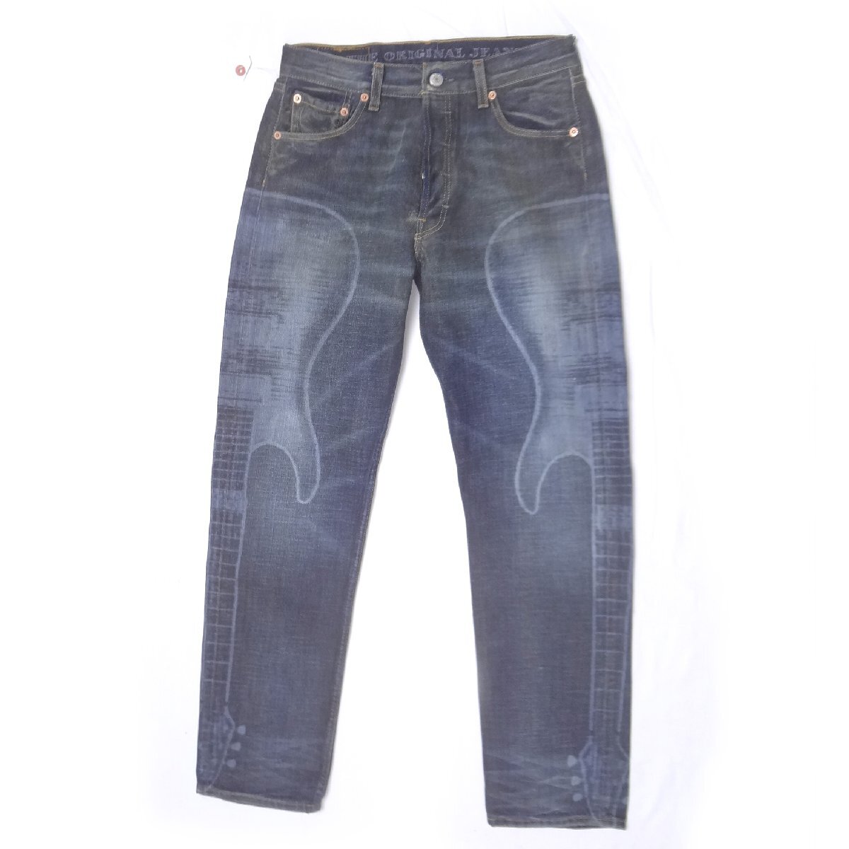 リーバイスの501、実店舗の店頭展示品を1度洗濯しただけの未使用品、Levi'sインディゴブルージーンズ、ジーパン、細くないストレート、綿100%、レーザープリント付き