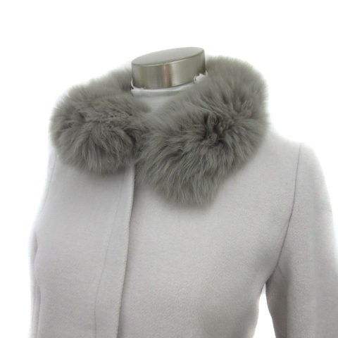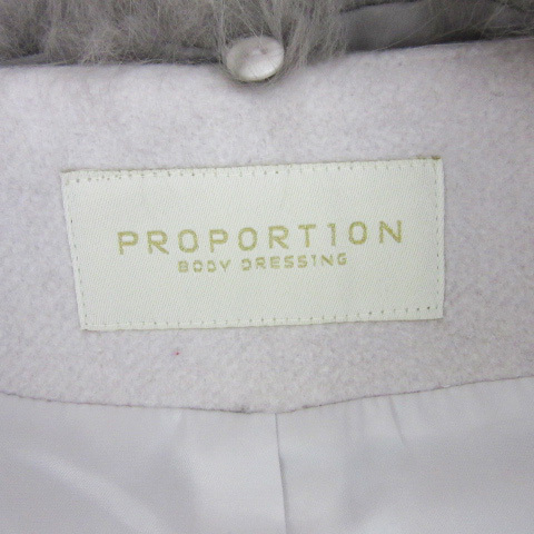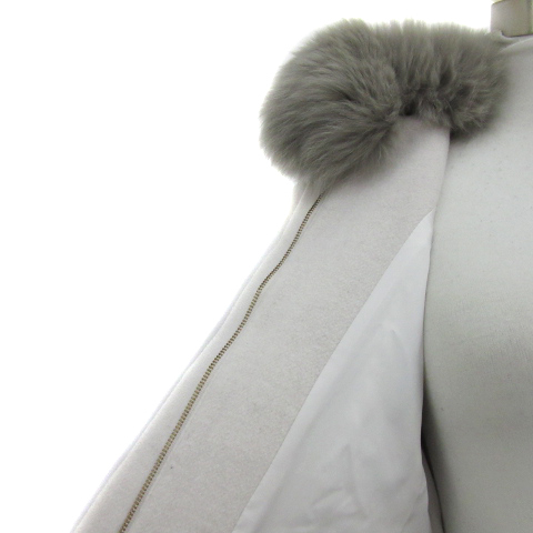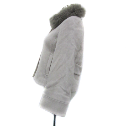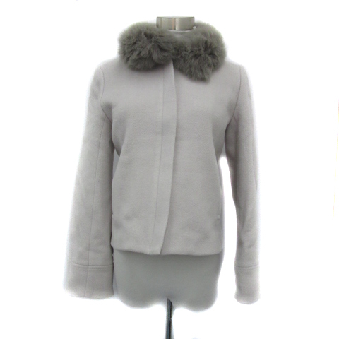 プロポーション ボディドレッシング ノーカラーコート ショート丈 無地 ジップアップ フォックスファー S 薄ピンク グレー レディース