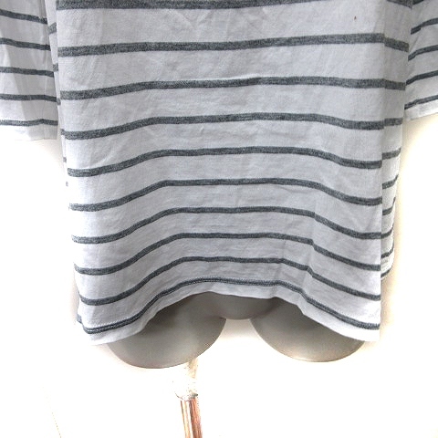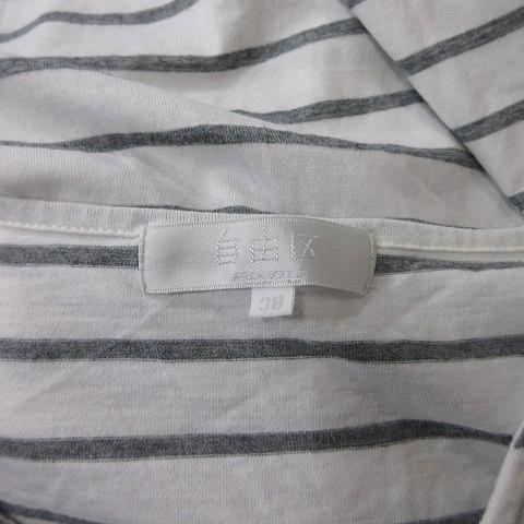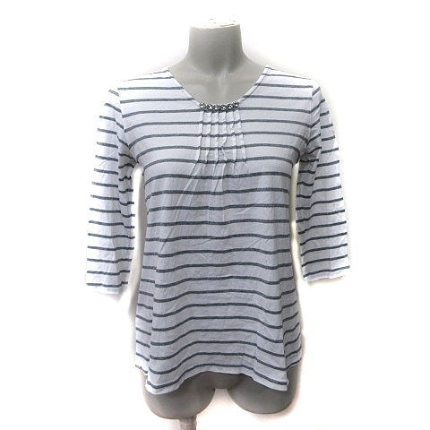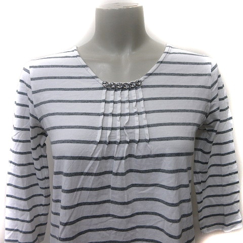自由区 オンワード樫山 カットソー ボーダー 七分袖 38 白 ホワイト 黒 ブラック /YI レディース
