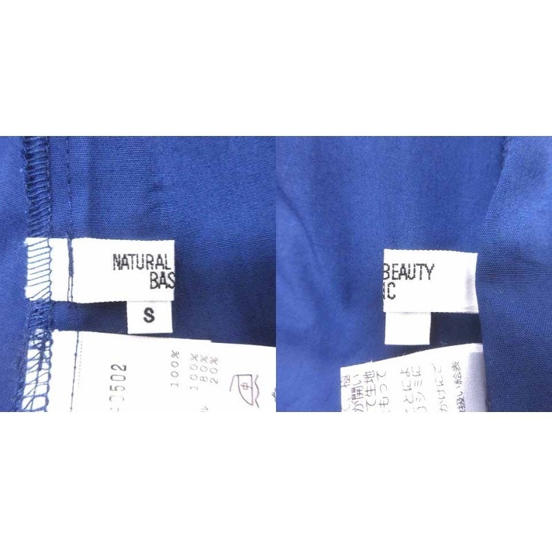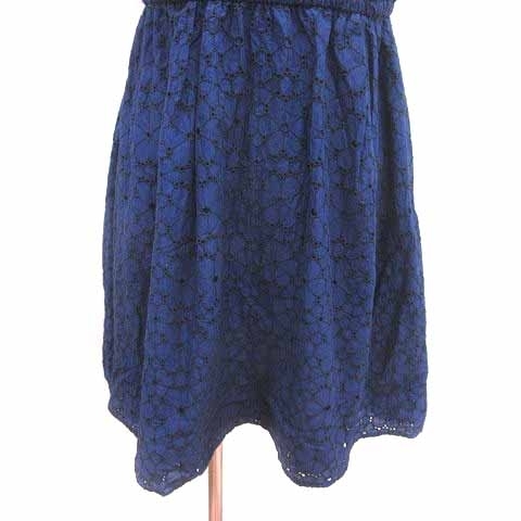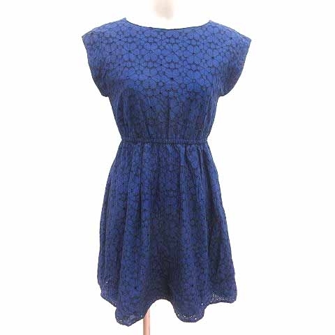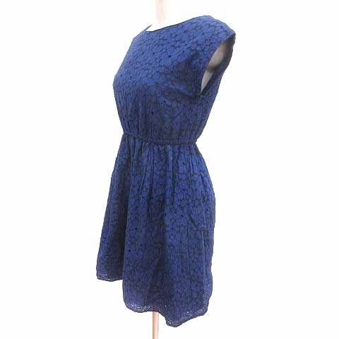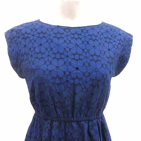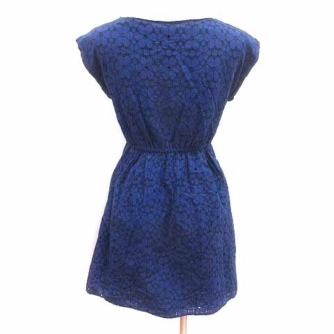 ナチュラルビューティーベーシック NATURAL BEAUTY BASIC ワンピース フレア ミニ 刺しゅう フレンチスリーブ S 青 /YK レディース