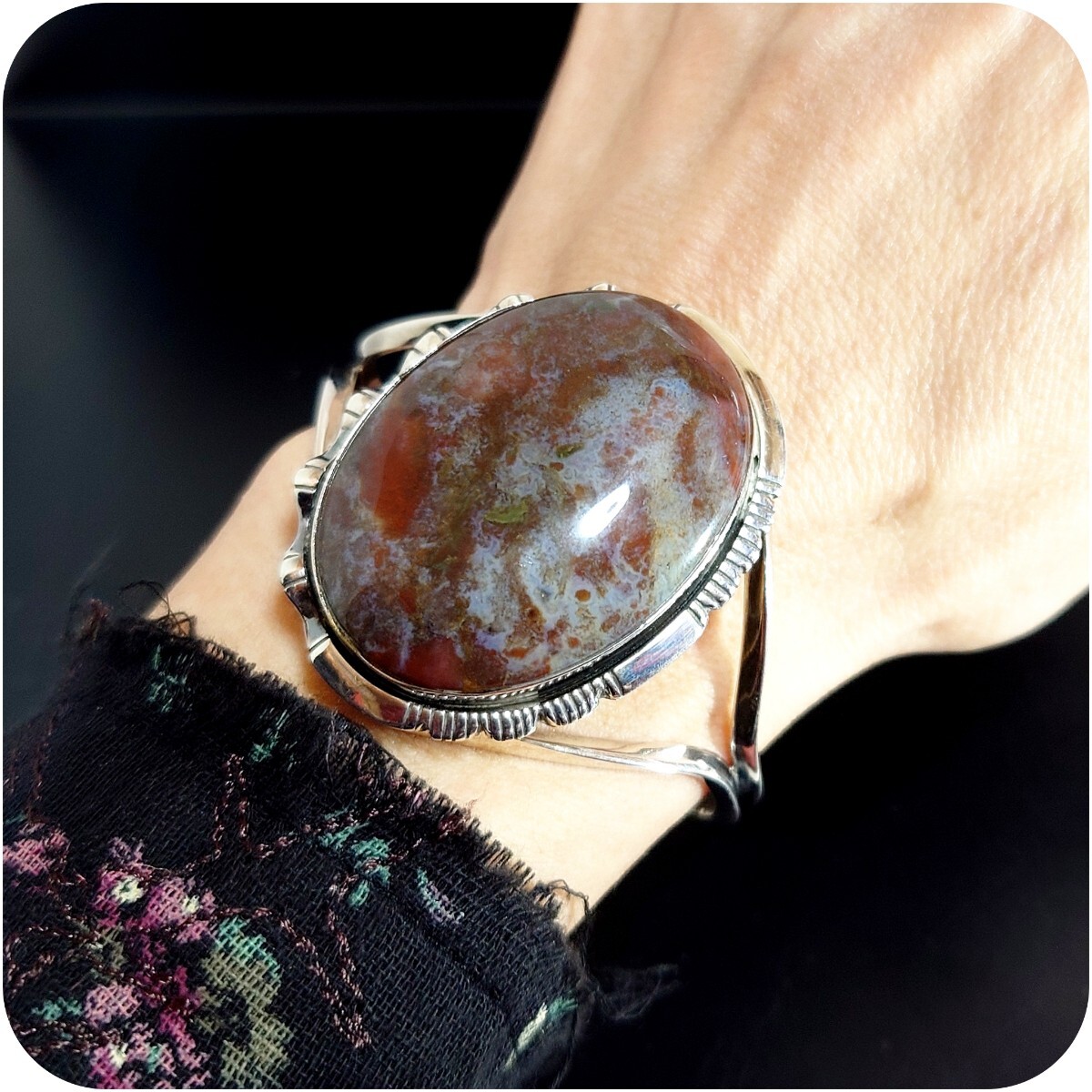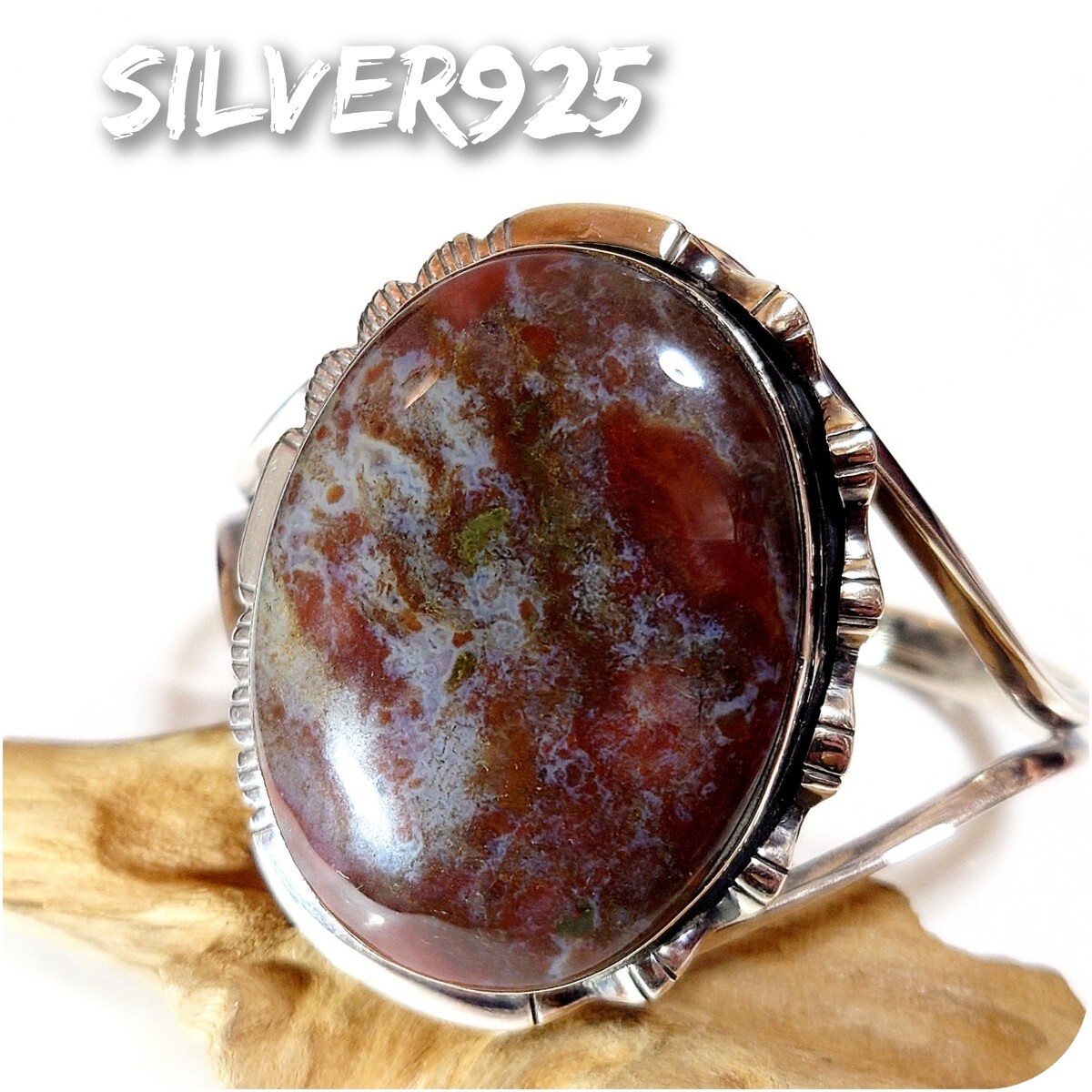 ワイドなボリューム感と天然石の持つ力強さが最高にお洒落なバングルです☆