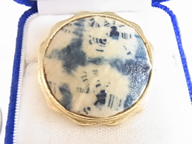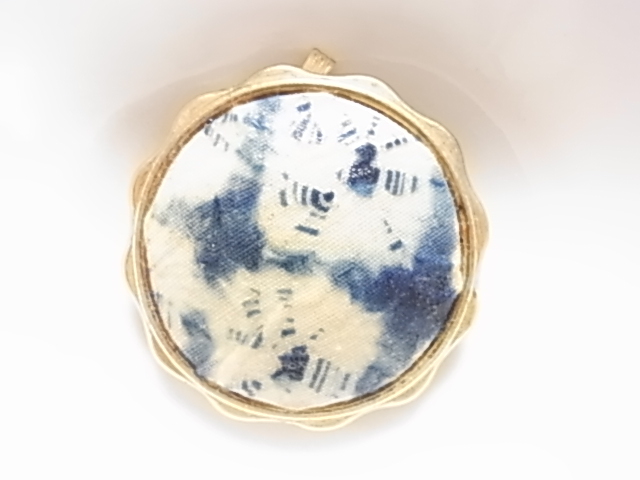 2wayビンテージ/ヴィンテージ 和モダンテイスト アイボリーホワイト系と紺青色系がシックな印象のペンダントトップorスカーフ留め▲