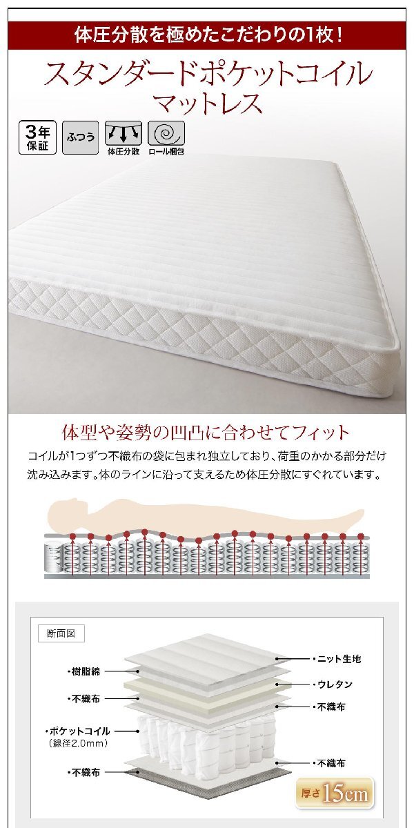 棚・コンセント付きフロアベッド スタンダードポケットコイルマットレス付き クイーン(Q×1)