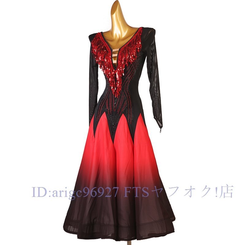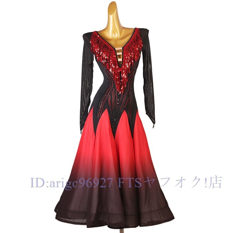 ☆新品 レディース社交ダンス衣装 モダンダンス練習ドレスワンピース サイズ調整可 グラデーション系 ライトストーン飾り S~XXL