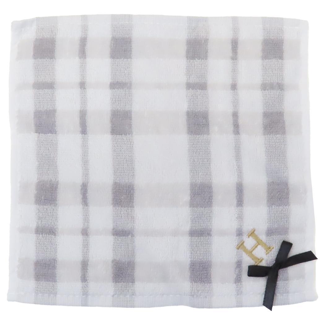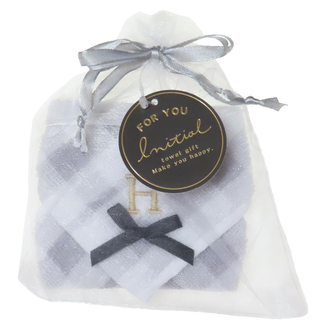 ミニタオル リボン付きイニシャルタオル H クーリア プレゼント シンプル 巾着入り グッズ