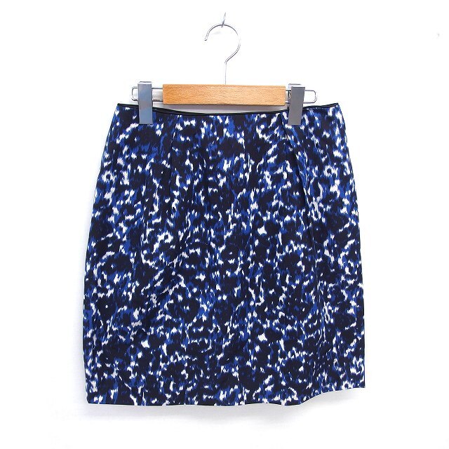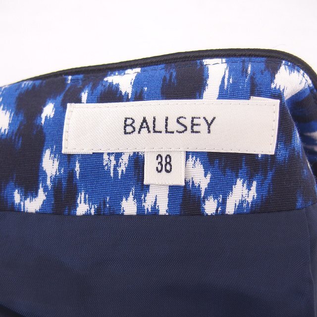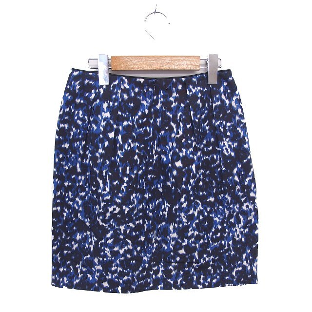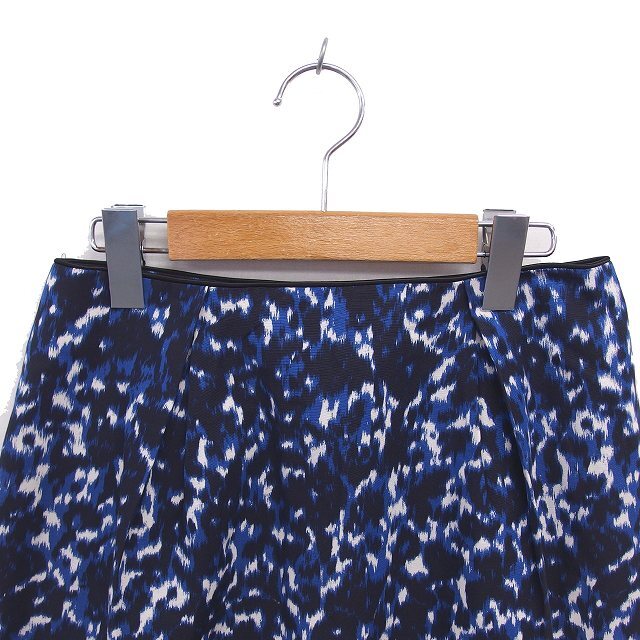 ボールジー BALLSEY トゥモローランド 台形 スカート ひざ丈 総柄 薄手 バックジップ 38 ブルー ブラック 青 黒 /TT レディース