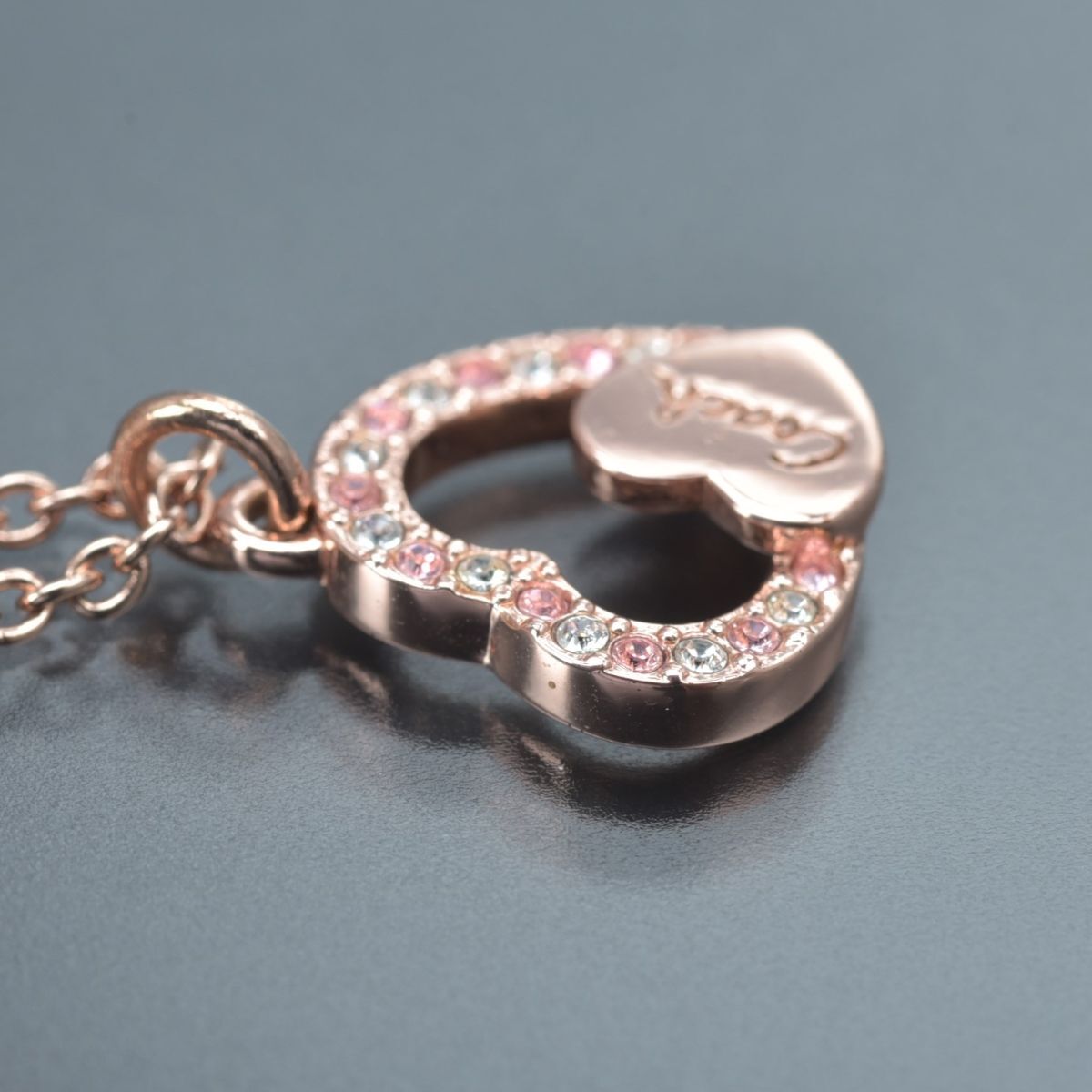 美品 コーチ COACH ハートネックレス ピンクゴールド 全長45.5cm 石 ストーン アクセサリー 箱/袋付 ジュエリー #60※B325