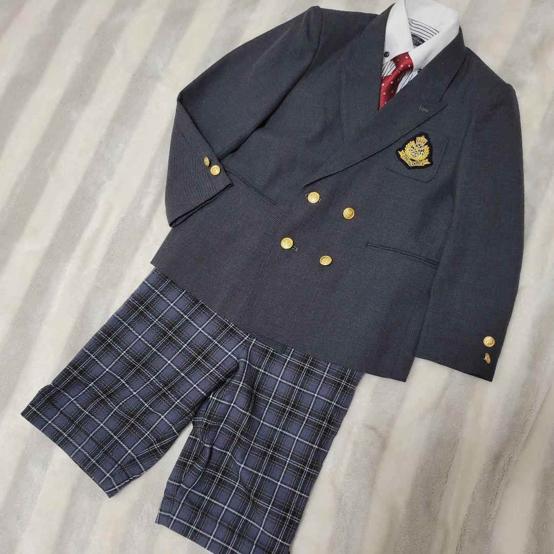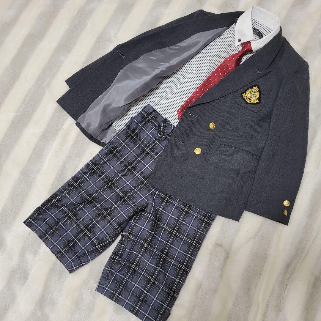 ジャケット、Yシャツ、ハーフパンツ、ネクタイの4点セットです。