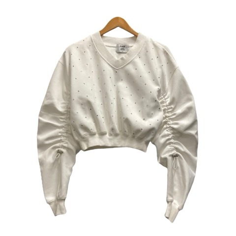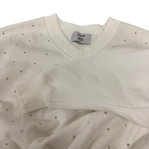 ジュエティ jouetie トレーナー 長袖 Vネック ラインストーン ドット コットン混 082412701301-01 M 白 ホワイト レディース