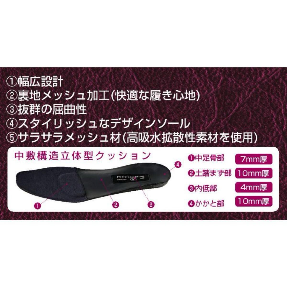 厚みのある立体型クッションを使った中敷きは疲れにくく、快適な履き心地を実感。 抜群の屈曲性で歩く足に合わせて曲がるので歩きやすく走れるパンプス。