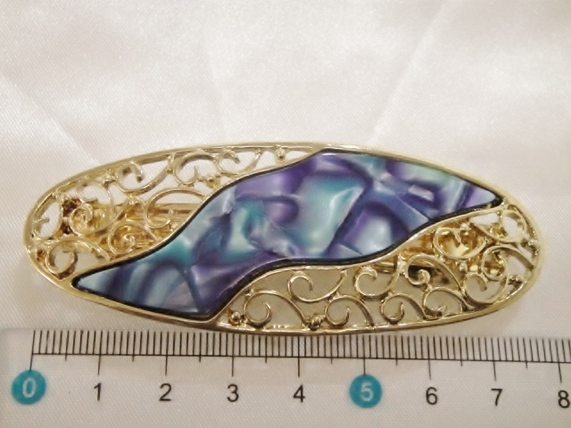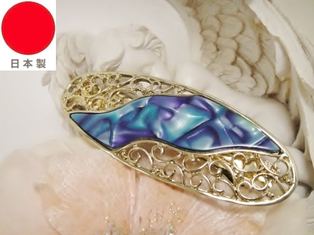 ♪ 新品 バレッタ 日本製『高品質/アセチ/ミディアムサイズ/オーバル型/GOLDメタルフレームコンビ/パールマーブルMIXカラー』♪
