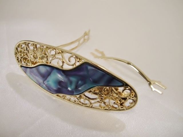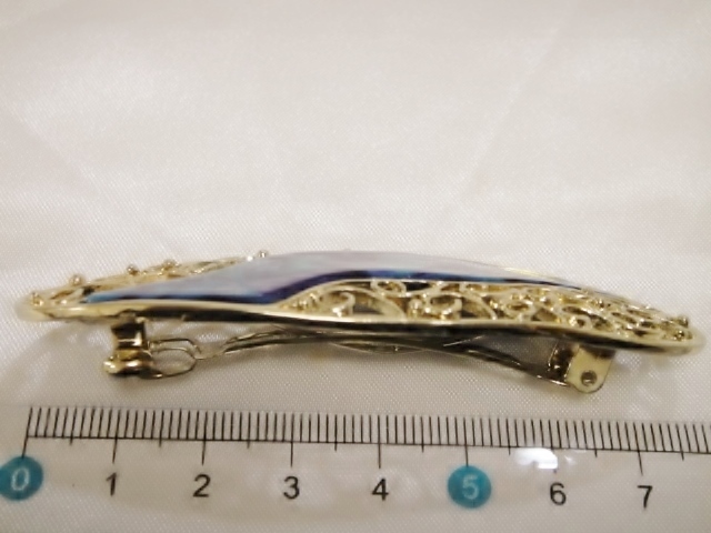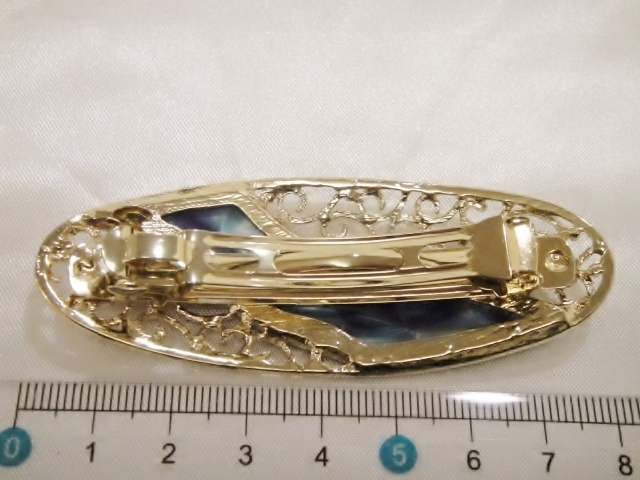 バレッタ本体、クリップ等にメッキ加工が施されておりますが経年劣化による色の変色が生じる場合がございます。