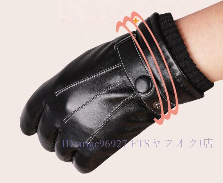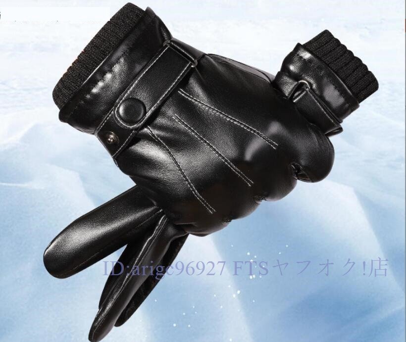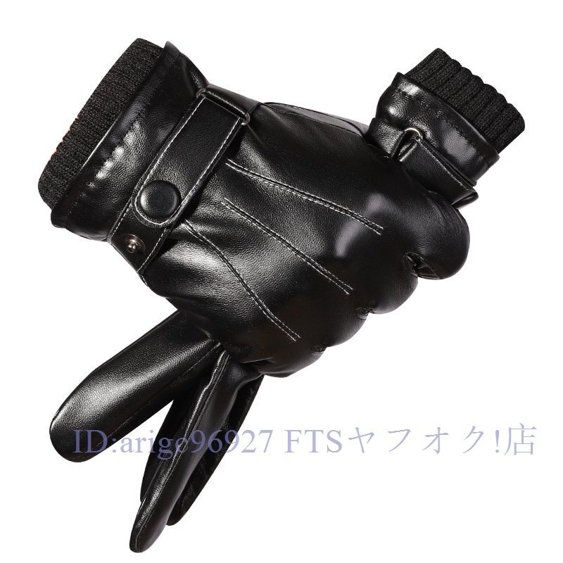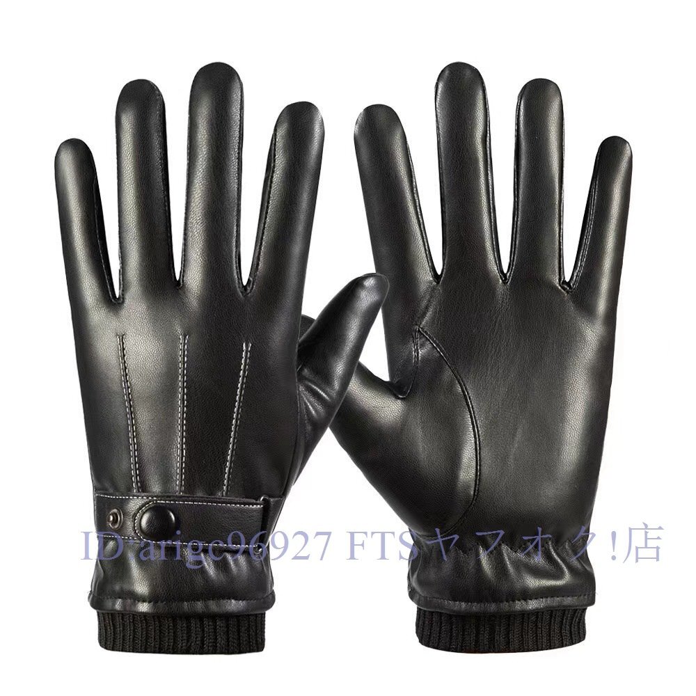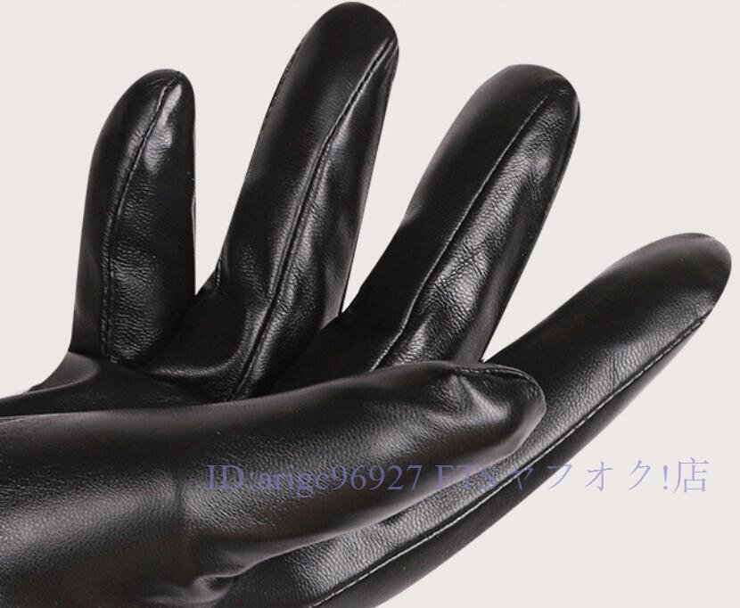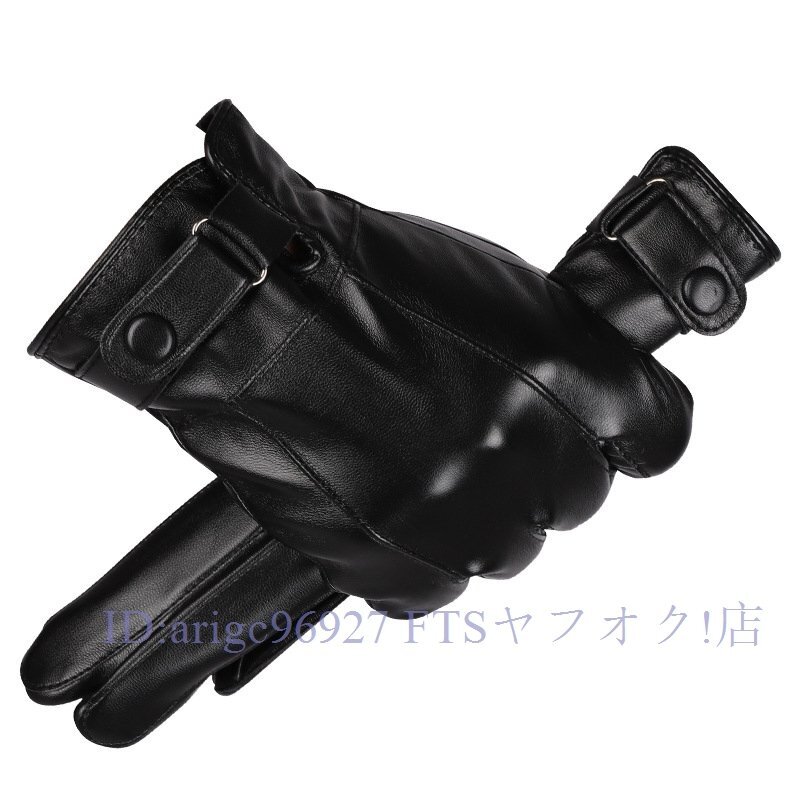 ★新品メンズ 本革手袋 シープスキンレザー 防寒 冬 レザー 暖かい バイク ツーリング ブラック 黒 シンプル