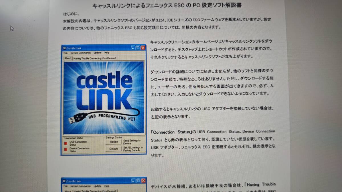 〇キャッスルクリエーションのモーターコントローラーはこのキャッスルリンクでパソコンから設定します。