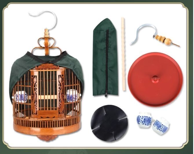 竹製鳥籠高級品付属品一式鳥籠を手作り物