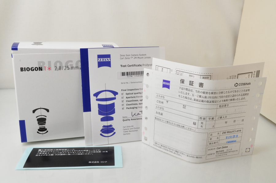 ■外観チェック 新品!! 写真撮るため、開箱しました。 詳しい外観は写真をご参考ください★ ■光学系チェック 新品♪ 詳しい状態は写真をご参考ください★ ■動作チェック 新品(^^♪ ■付属品: ・レンズ本体 ・フロントキャップ ・リアキャップ ・保証書(販売店カードがなし) ・取扱説明書 ・シリアル一致元箱 ※付属品は、写真に写っているものが全てです。 |