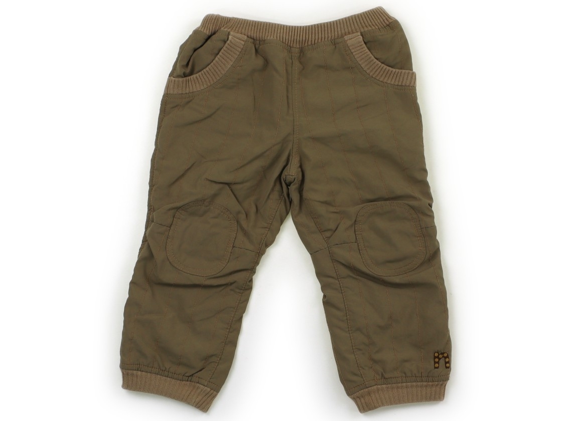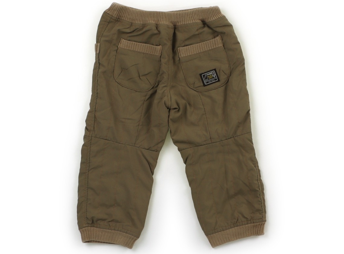 ポリエステル地、裏はカットソー生地で中綿の暖かいアイテムです。ウエストは総ゴムです。お腹下とお尻に薄いシミ跡、リブに毛羽立ちが見受けられます。