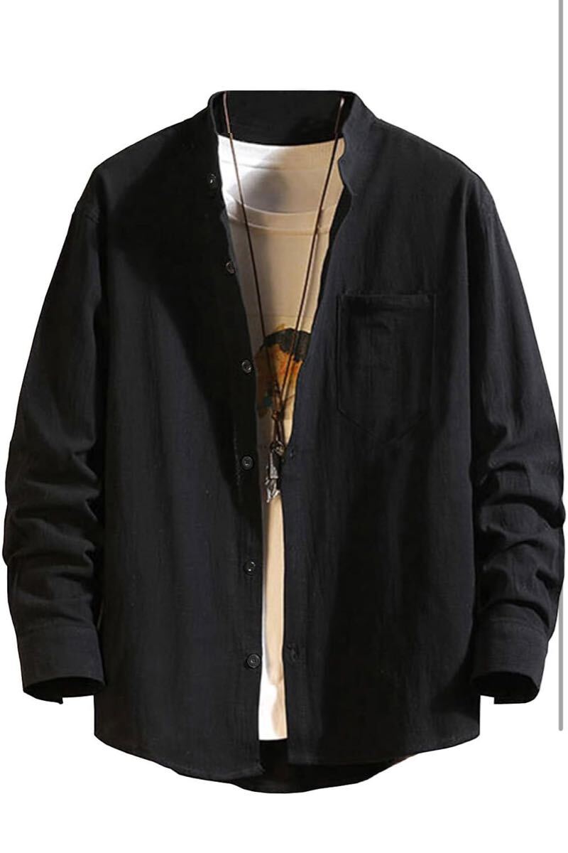 シャツ メンズ 長袖 春 カジュアル おしゃれ 綿麻 無地 ゆったり ビジネス 大きいサイズ