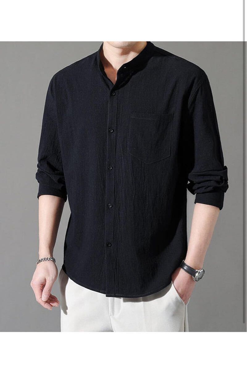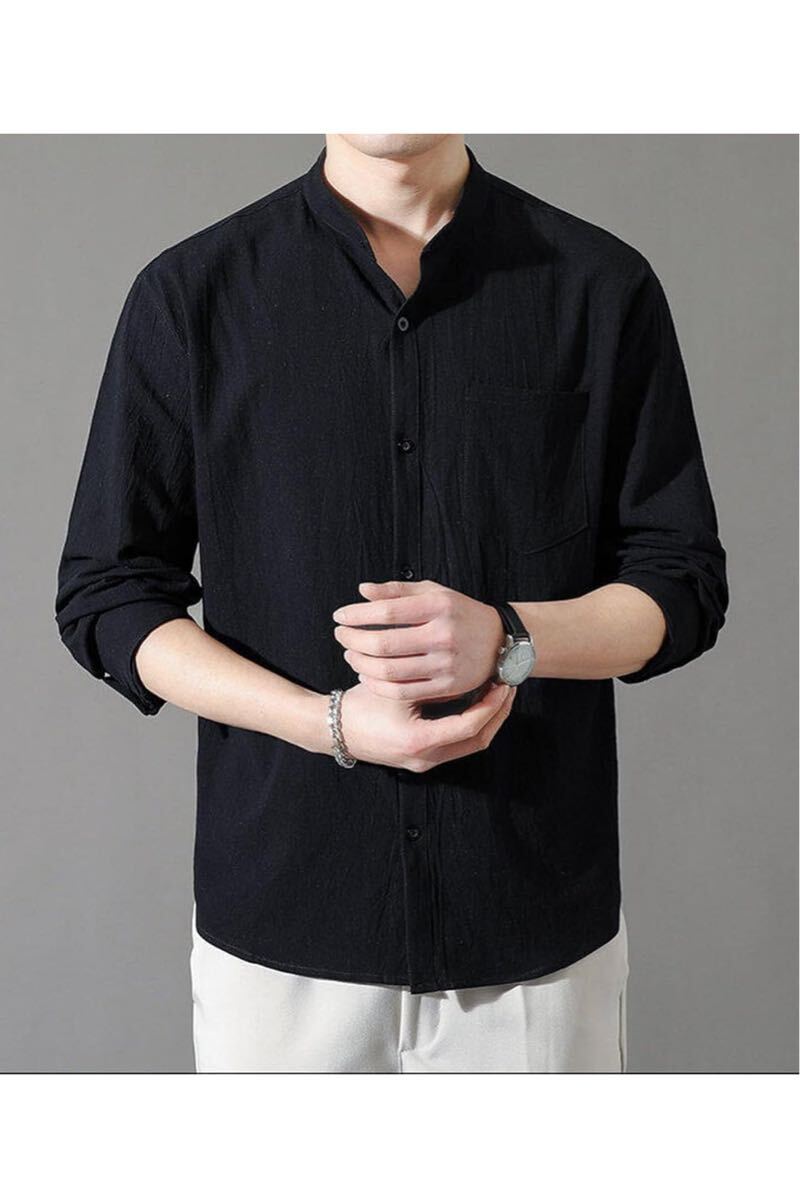 ゆったりとしたデザインで、匠心を込めて作られたメンズシャツは、シンプルながら立衿が特徴で、男性の品を出してくれます。左胸にポケットが設置していて、袖口はそのままで着ても折返しで着てもできる美観性と実用性を高める長袖シャツです。