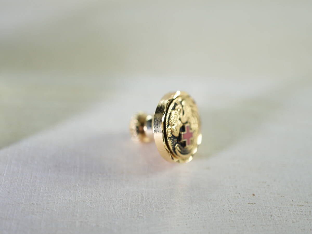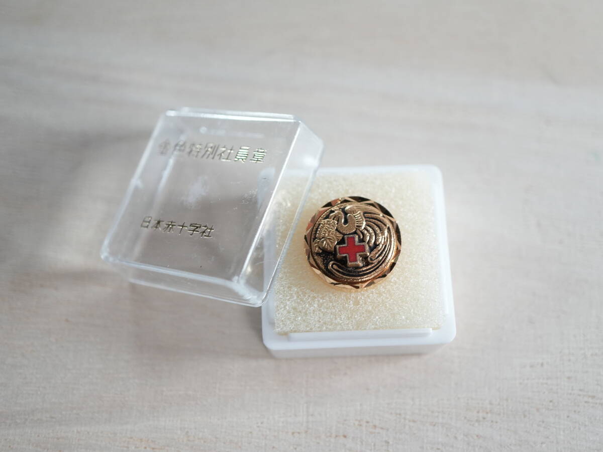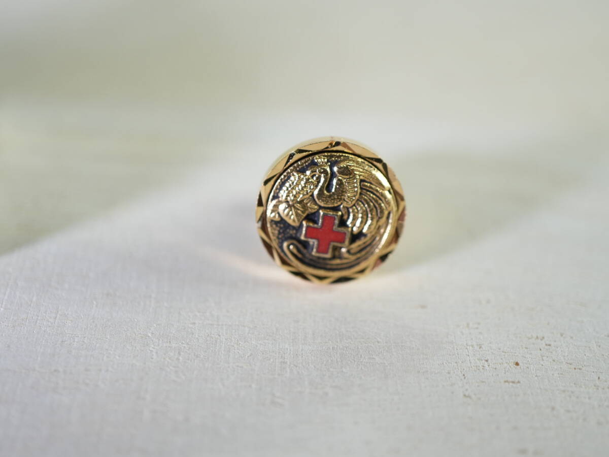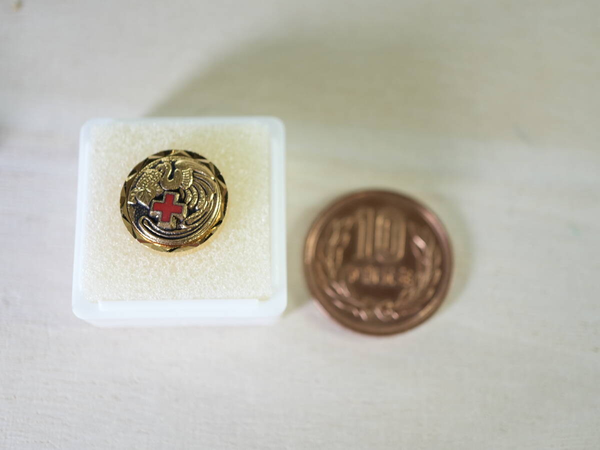 日本赤十字社の金色の社員章でして、鳳凰とレッドクロスのデザインでございます。 1.5センチ × 1.5センチ タイタック仕様。ケース入り。 可能な限り同梱致します。 その旨を落札後にメッセージにてお伝えいただきたく存じます。 |