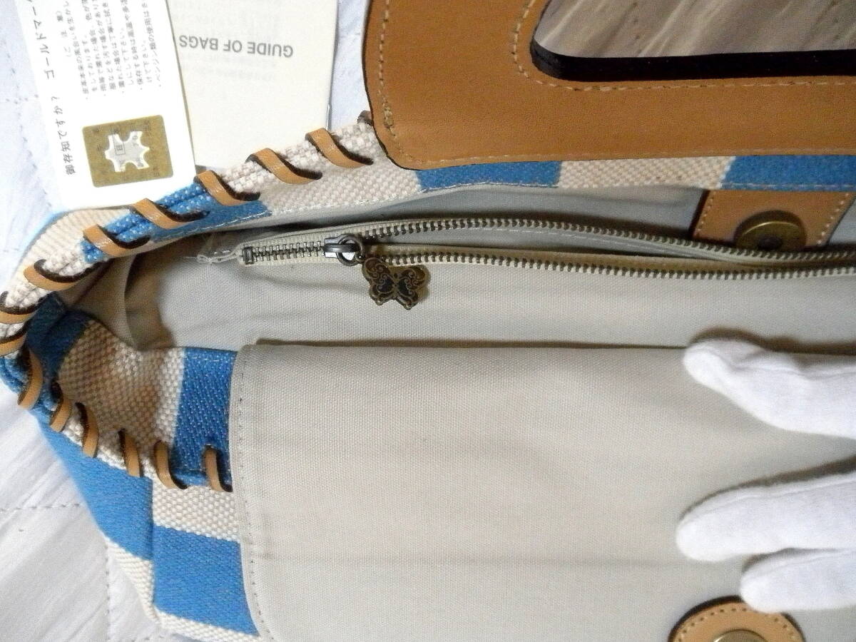 即決 新品 タグ付 / 未使用/ ANNASUI ♪ 牛革 皮革ハンドル ハンドバッグ 横47 縦25 マチ13 大きなバッグ / アナスイ 日本製 青