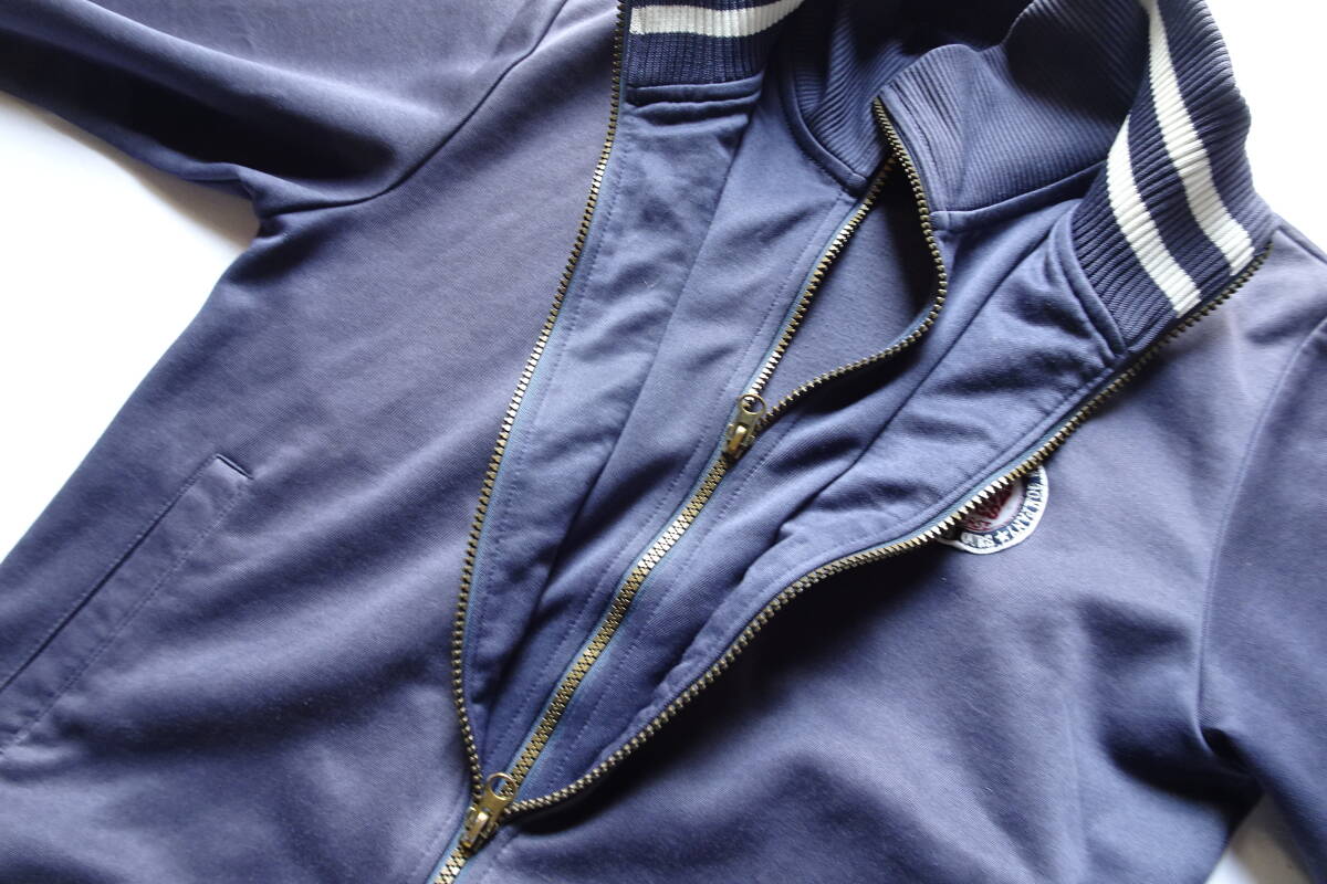 CONVERSE/コンバース/ジャケット/アウター/ジャージ素材/前立部分二重/前ジップアップ/白ライン入リブ/くすみ紺/Lサイズ(3/26R7)