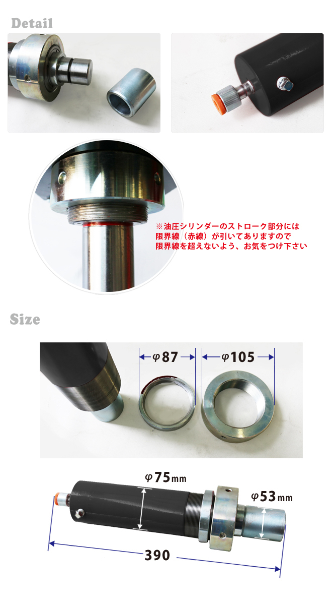 ・油圧プレス20トン用油圧シリンダー(単品)です ・シリンダー内部にリターンスプリングが内蔵してあるので、開放バルブを緩めるとシリンダーは自動で戻ります ・シリンダー先端部の金具は取り外し可能です |
