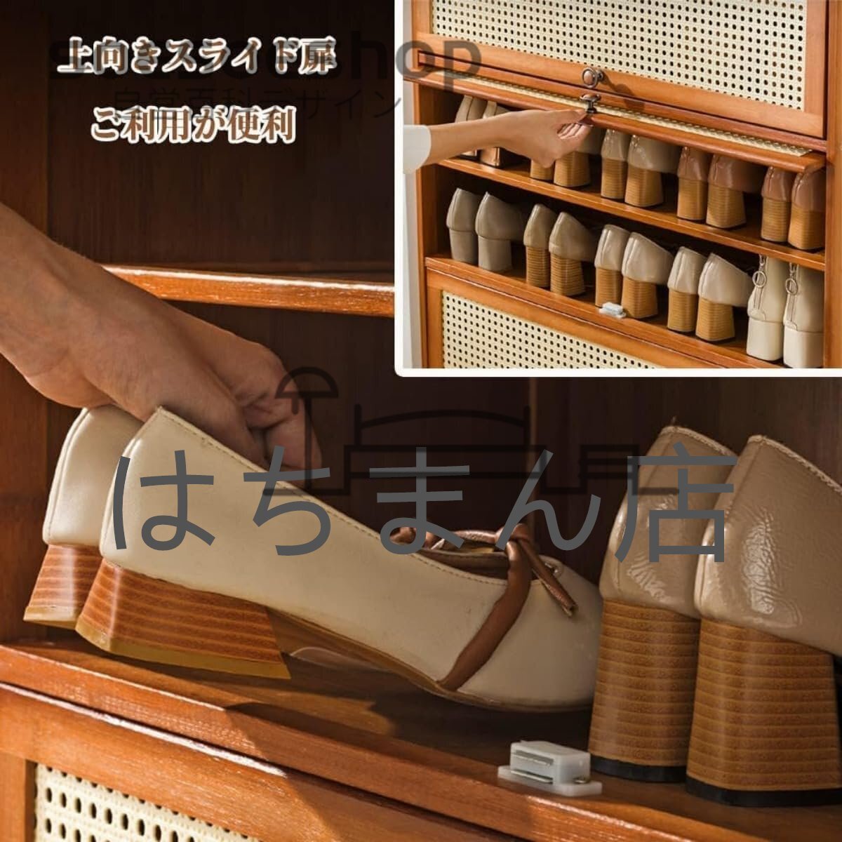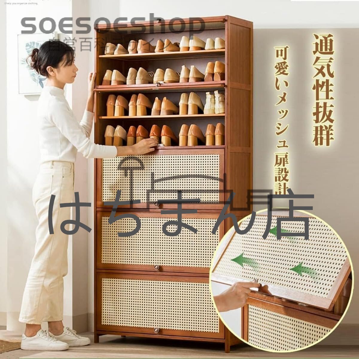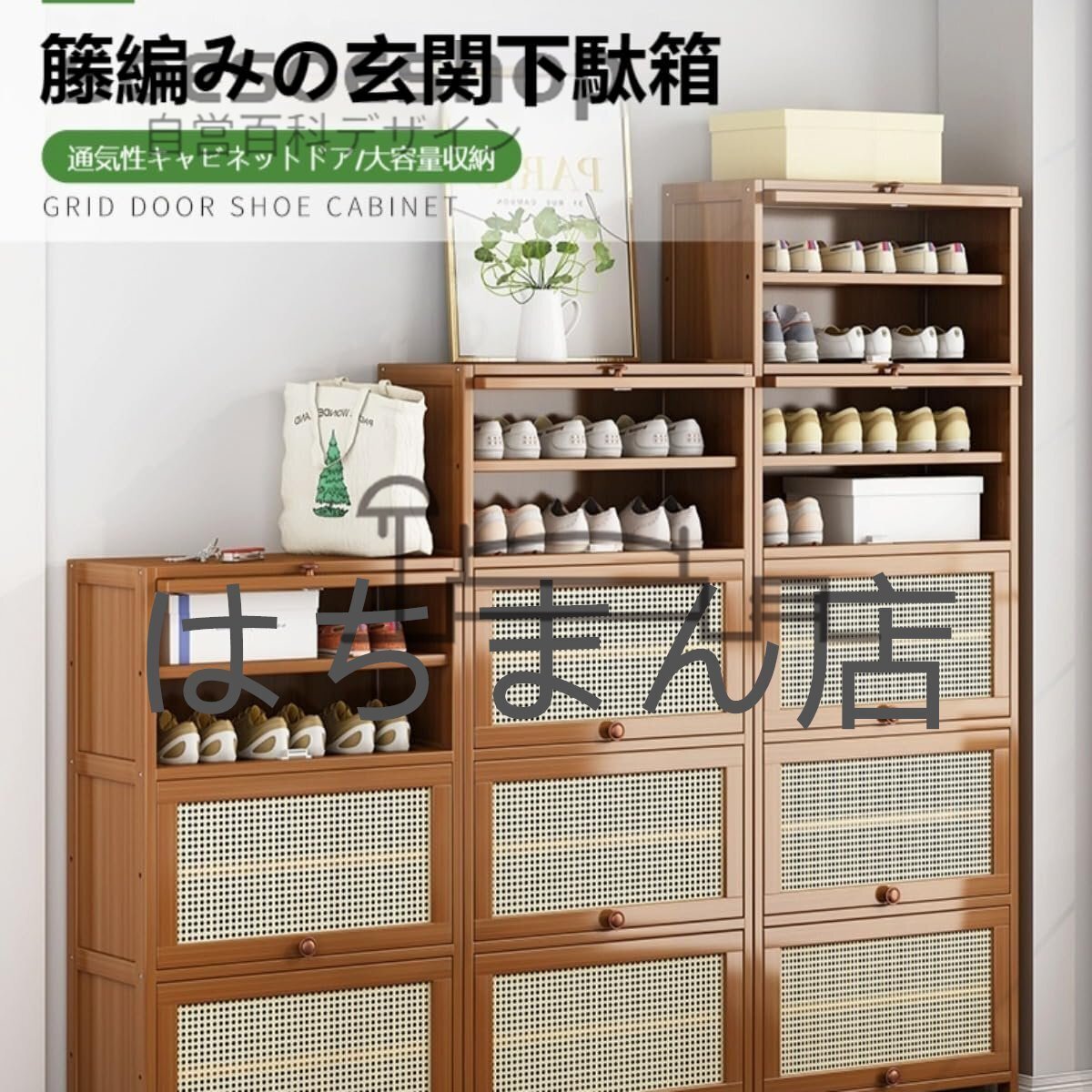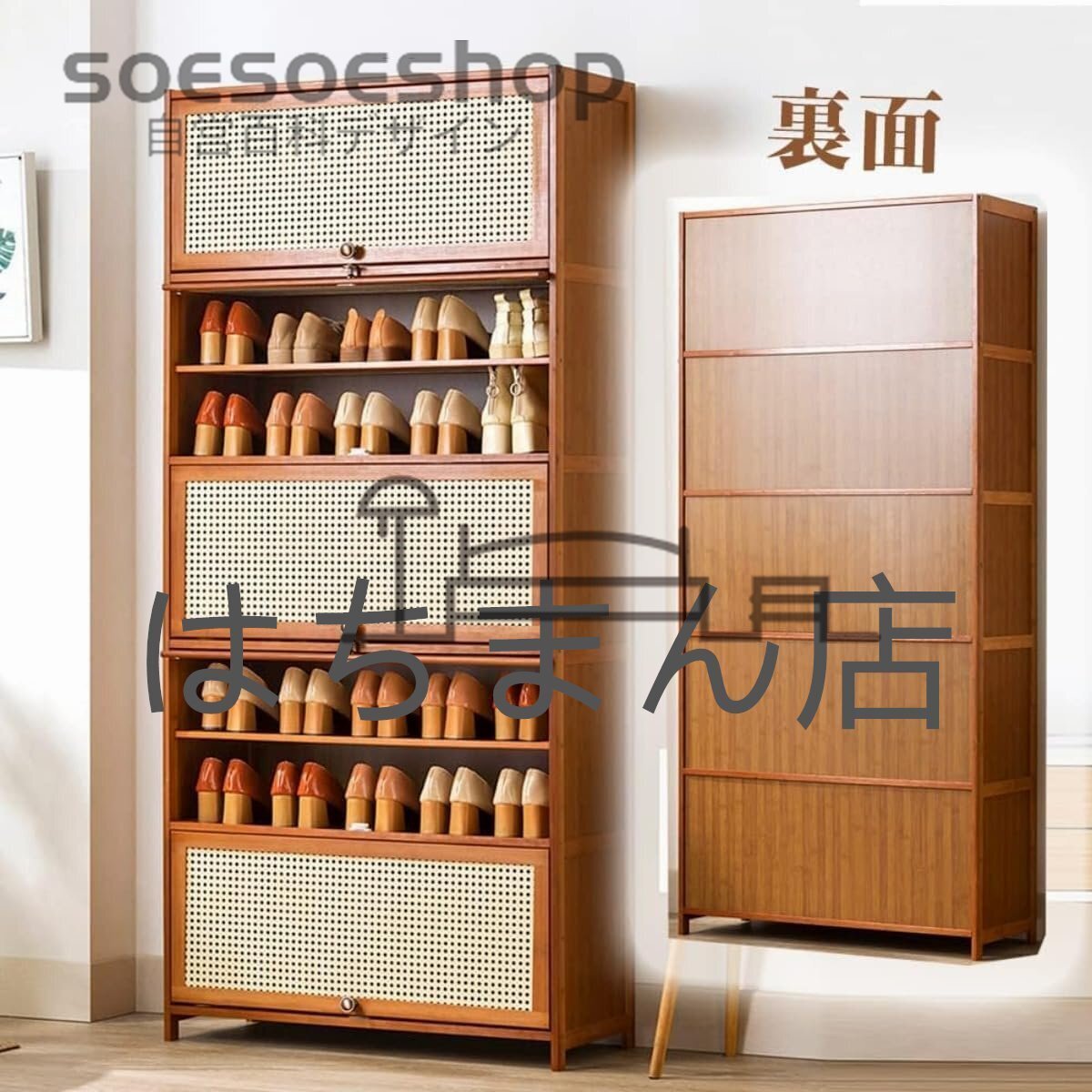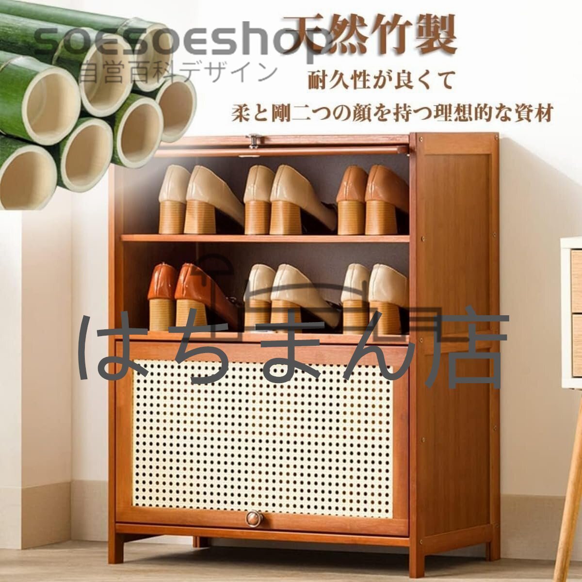 下駄箱 竹製 大容量 靴箱 玄関収納 省スペース ルーバー扉 通気性 消臭 シューズラック 靴棚 クローゼット (2段 幅60cm) (80cm 1段)