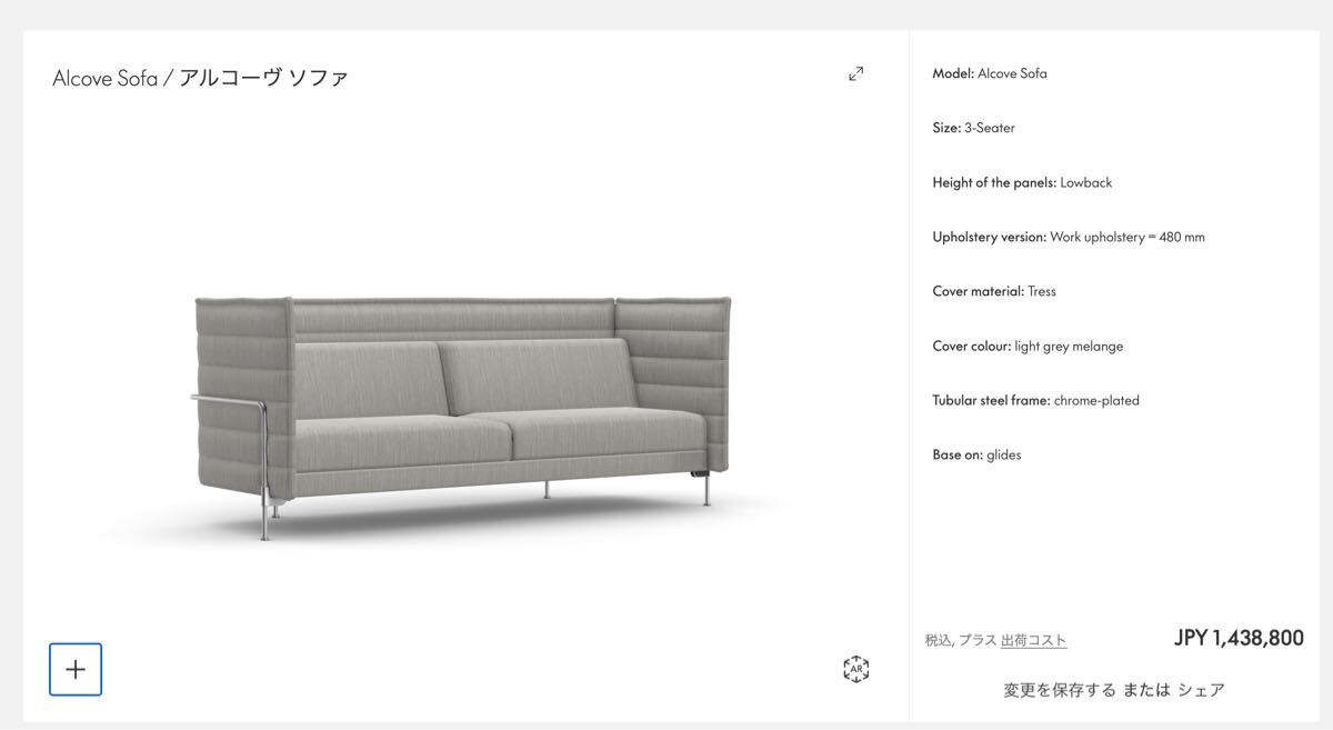 現在vitraのシミュレーターで3シーターを試してみると、150万円程になるようです。最後の画像参照