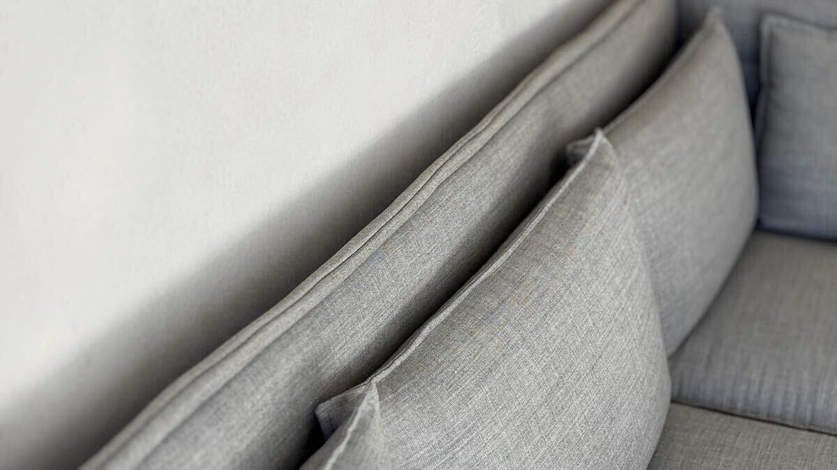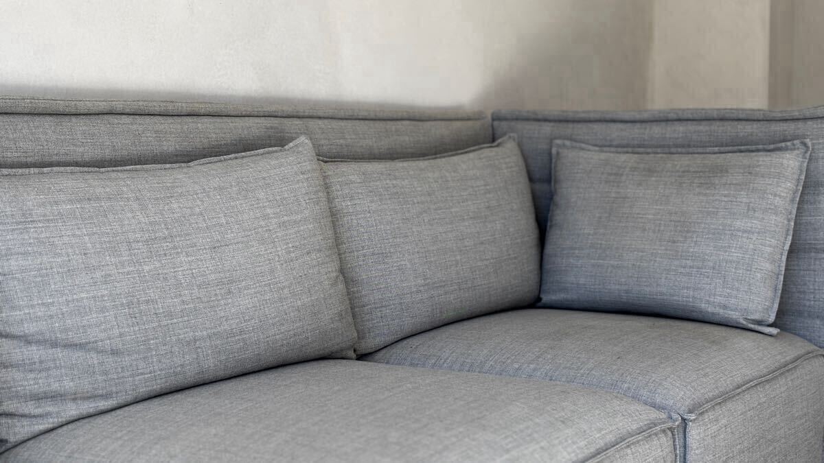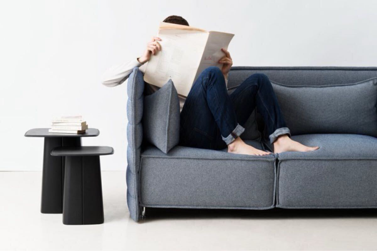 両サイドの2つのクッションは、現行品では付いておらず、特別に作って頂いたものです。(中央3つのクッションにはvitraのロゴがありますが、両サイド2つはロゴ無しです)