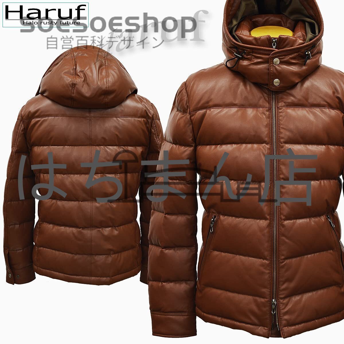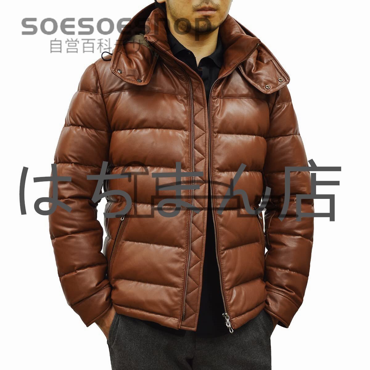 レザージャケット メンズ 本革 レザーダウンジャケット フード ダウンジャケット ダウンコート 革ジャン ダウンブルゾン キャメル M-3XL
