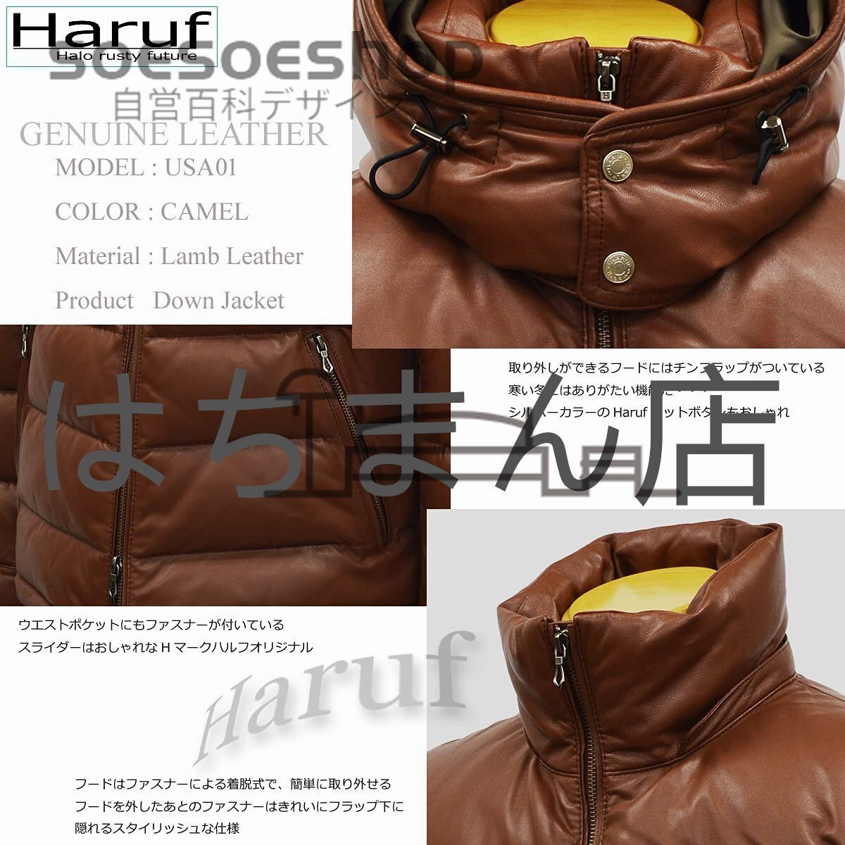 シンプルなレザーダウンはこだわりがいっぱい! 天然ダウンの比率はダウン90%、フェザー10%の高級仕様。おしゃれなファスナースライダーやドットボタンはHarufブランドオリジナルを使用。