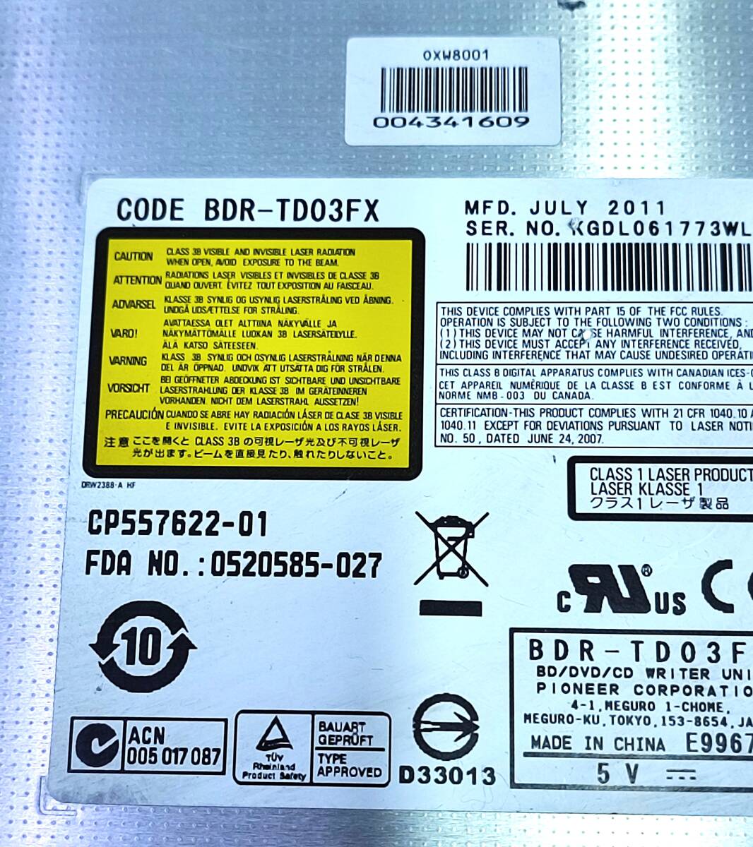 【中古パーツ】複数可 blu-ray 内蔵ブルーレイドライブ 厚さ12.7mm SATA BD ■BDR-TD03FX  ベゼル無し