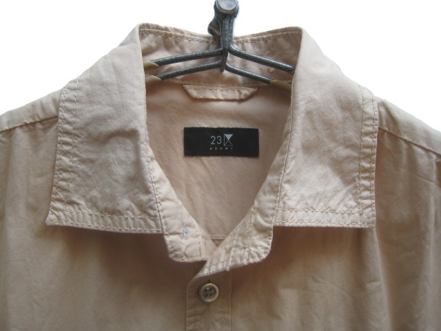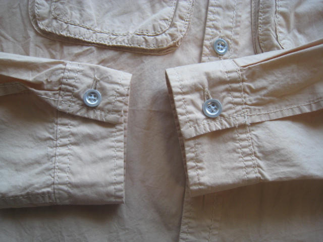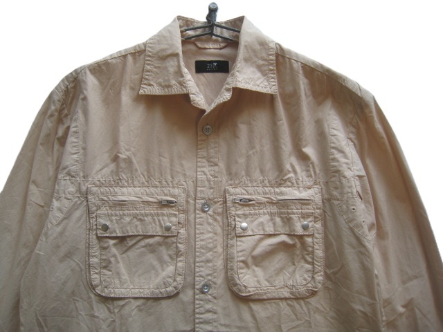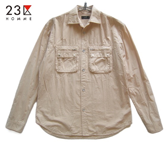 美品!!23区オム 23区HOMME*顔料染め加工 ダブルジップポケット ミリタリーデザインシャツ 48 実寸M ベージュ オンワード樫山